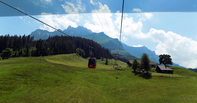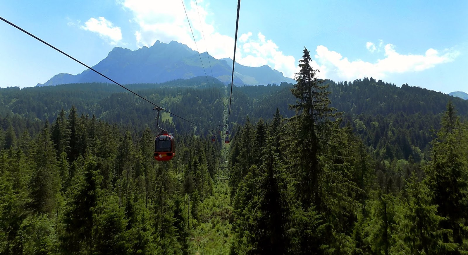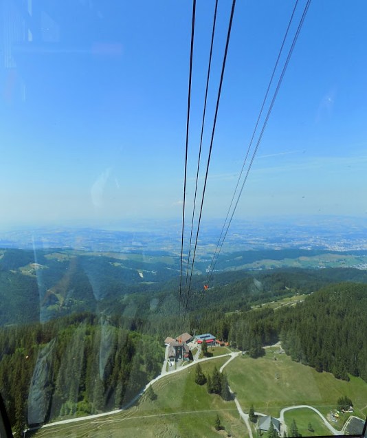A Fräkmünteggnél át kellett szállni egy másfajta felvonóba, ami nagyobb kocsis, negyed óránként jár, és 55 ember is elfér benne. Nagyon modern a rendszer, forgókapun lehet bejutni, és a jegy lecsippantásával egy képernyő jelzi, hány szabad hely van még a felvonóban. Elég népszerű ez a feljutási mód, nem nagyon szokott maradni szabad hely.