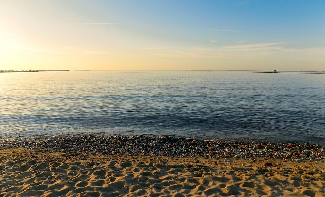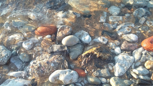 Lemásztunk a vízhez, de nem volt különösebben hangulatos, úgyhogy odébbálltunk. Nem kellett sokat sétálnunk, hogy egy parkba kerüljünk, ahonnan egyenes út vezetett egy nagyon bájos, köves-homokos parti részre, ami tele volt grillező, beszélgető, napon sütkérező emberekkel és kutyákkal.