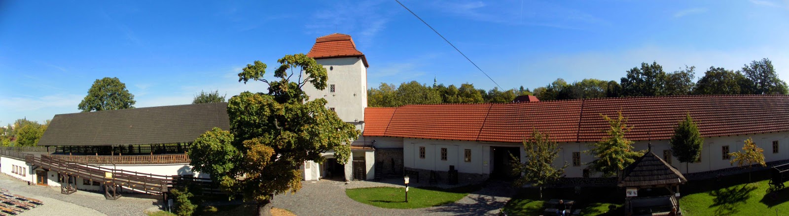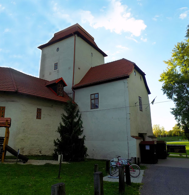 Eltroliztunk a várhoz, befizettük a 80 koronás jegyárat, és bejutottunk. Nos. Az a helyzet, hogy a várnak nyomokban van csak várformája. Nem sok maradt meg belőle, látszik, hogy amit tudtak, azt újjáépítették, de hozzá is építettek bőven. Látszik, hogy tényleg próbálták hangulatossá varázsolni, még középkorias zene is szólt az udvarban.