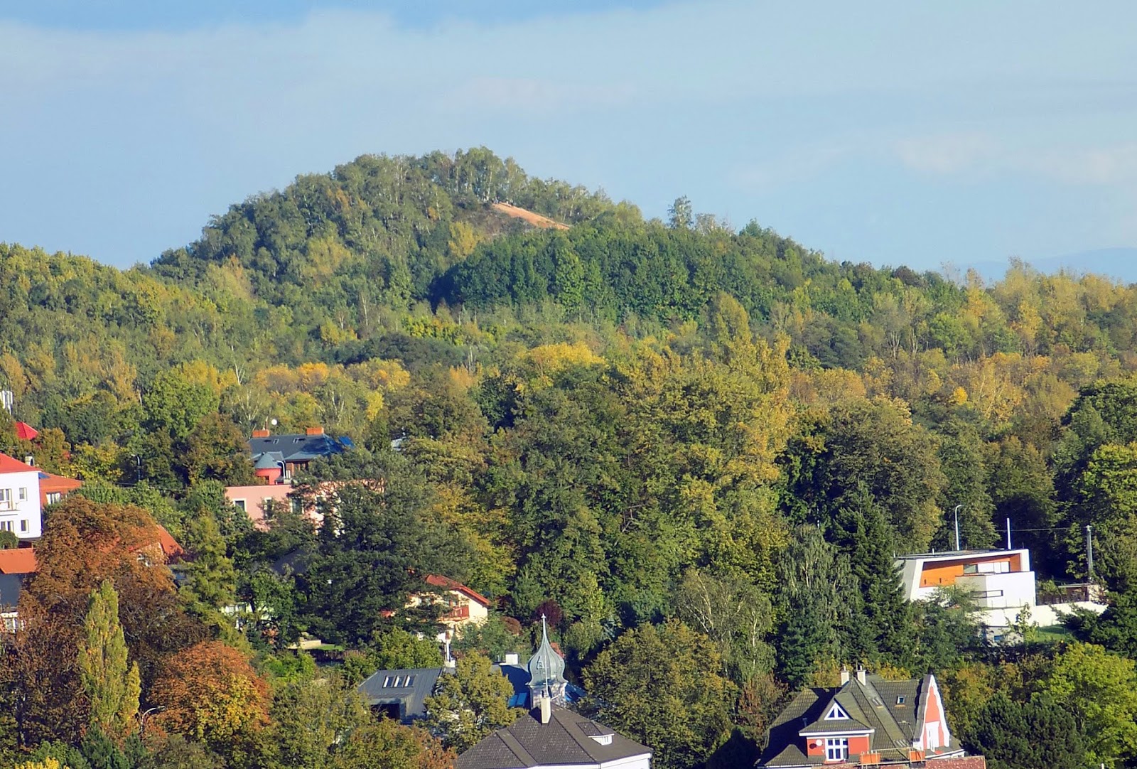 A kilátóból nem csak távoli hegyeket, békés lankákat, gyárépületeket, panelházakat, cuki romantikus épületeket vagy az Ostravice folyót láttuk, hanem a 315 m magas Halda Ema hegyet, ami konkrétan a helyi bányákból kitermelt kőzetekből és ipari melléktermékekből emelt mesterséges hegy. Érdekessége, hogy teljesen egyedi a növényvilága pont mesterséges volta miatt. Állítólag a hegy belsejében lévő anyagok a mai napig égnek, és időnként felhőpamacsok szállnak fel belőle. Fel lehet rá menni, de csak saját felelősségre. A mi időnkbe sajnos nem fért bele ez a túra.