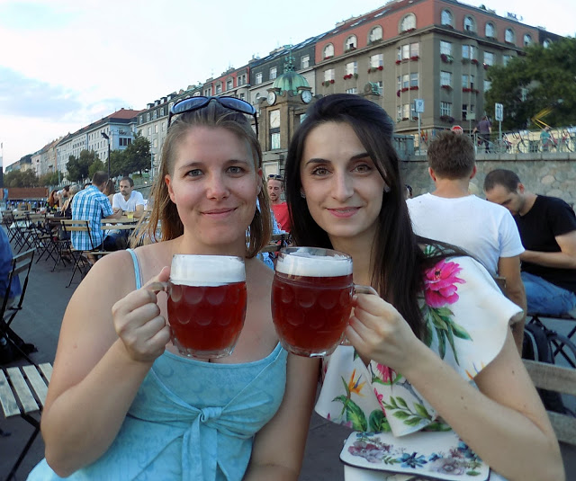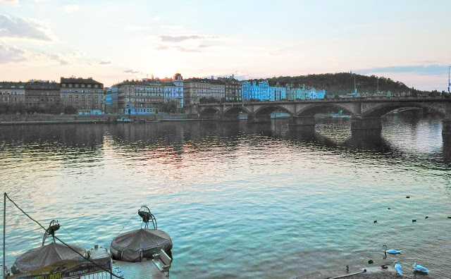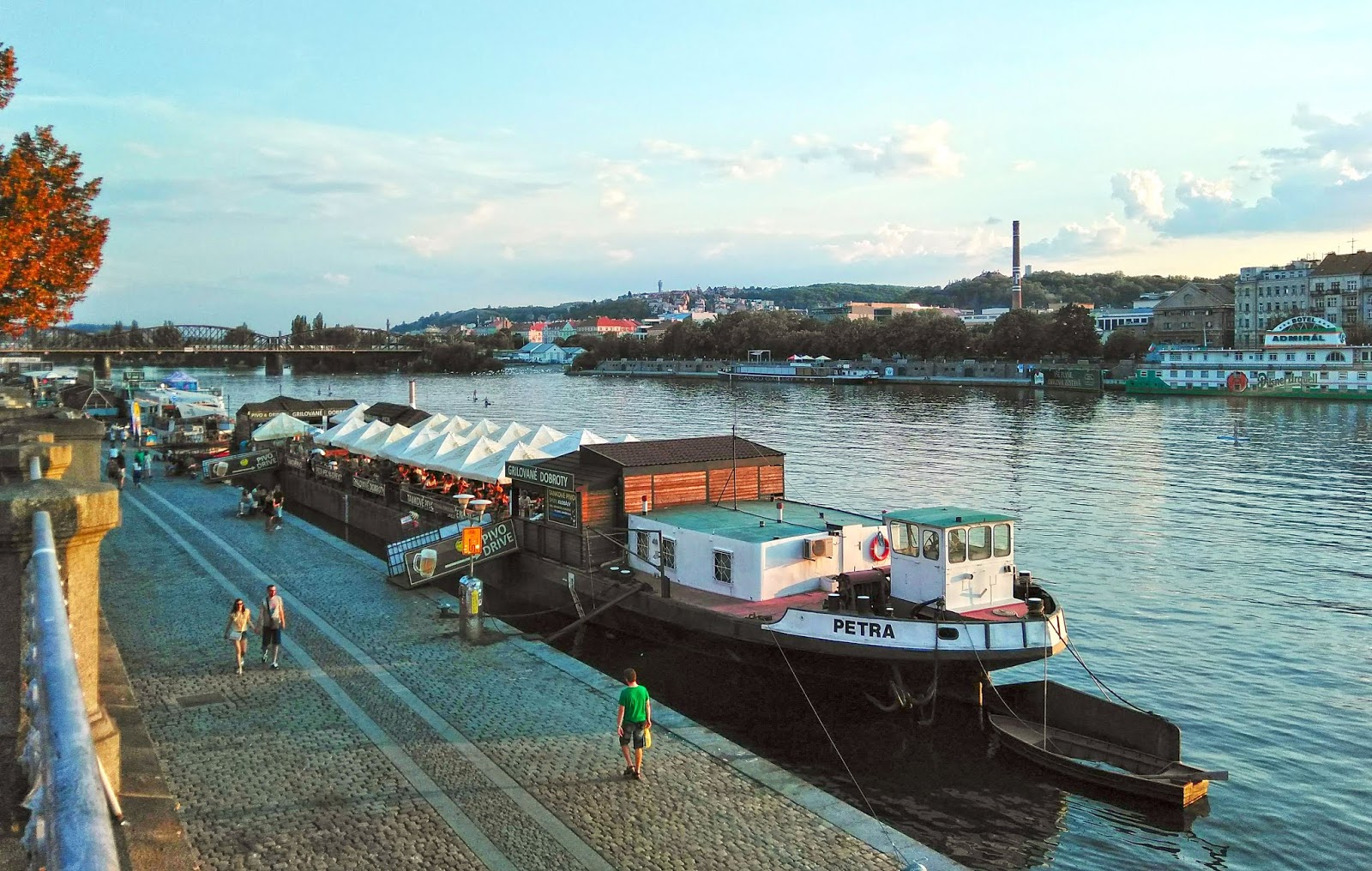 Estére találkozót beszéltünk meg Raliékkal, ezúttal Karel is becsatlakozott. A Výtoň villamosmegállónál találkoztunk, onnan sétáltunk le a rakpartra, ami olyan, amilyennek egy rakpartnak lennie kéne: bicikliút vezet át rajta, egy nagy sétány az egész kitelepült kocsmákkal, hajóbárokkal és zenés helyekkel.