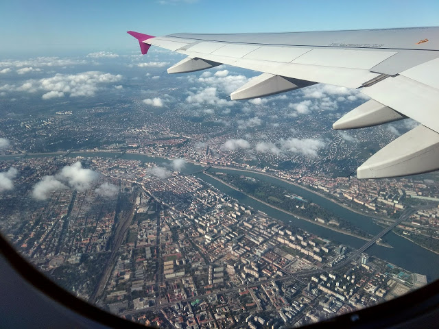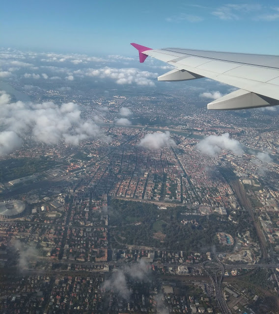 Wizz Airrel repültünk, és viszonylag későn csekkoltunk be, aminek eredményeképpen ablak melletti helyet kaptam, juhé! (Az a hír járja, hogy az ablak melletti helyeket már csak akkor osztják ki a helyfoglalásért nem fizető utasoknak, amikor kevés esély marad rá, hogy valaki fizet érte.)