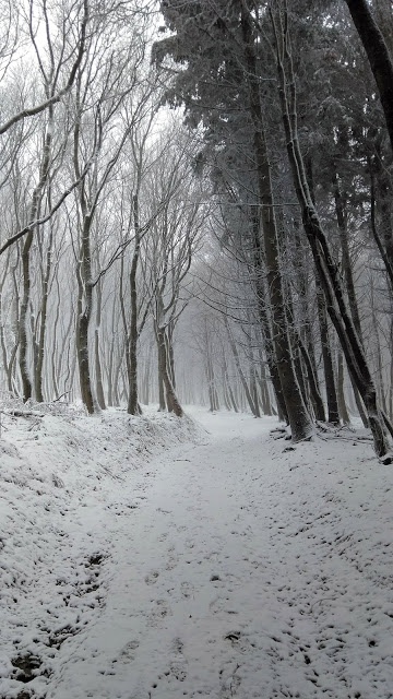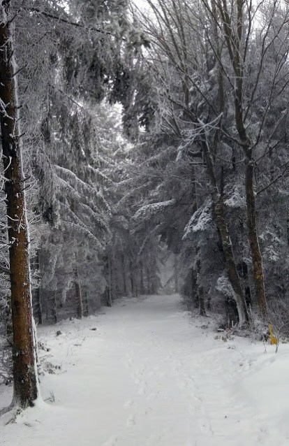 Elindultunk, és egy téli csodavilágba csöppentünk: körülöttünk havas fenyőfák, szűzhó a lábunk alatt, és a hó ha nem is nagy pelyhekben, de sűrűn hullott. Szélcsendről csak álmodhattunk: erős, hideg szél fújt, az aprószemű havat oldalirányból is bele tudta fújni a szemünkbe. Hamarosan láttuk, hogy itt bizony hófúvás van, és a hegyekbe bizony már megérkezett a tél.