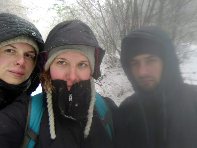 Továbbindulva naivan azt hittük, hamar a hóhatár alá érünk, hiszen biztosan csak a magas részeken van hó, de a hóhatár csak nem akart elérkezni. Ellenben sokszor bokáig érő hóban, recsegő fák között haladtunk a viharos szélben.