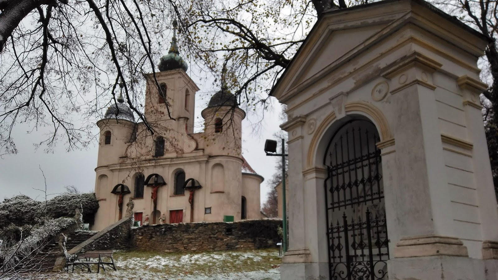 Mindig is utáltam a kőszegi Kálváriát. Szép a templom, hangulatos a dombtető, de magát a felfelé vezető utat nem szeretem, nagyon meredek, köves, csúszós. Most ezen mentünk le, hát egy élmény volt. A domb aljában van egyébként a rejtekhely, ahol a Szent Koronát őrizték bő egy hétig 1945 márciusában, mielőtt Ausztriába, és onnan Amerikába került volna. Most éppen felújítják, jövőre talán már látogatható lesz.
