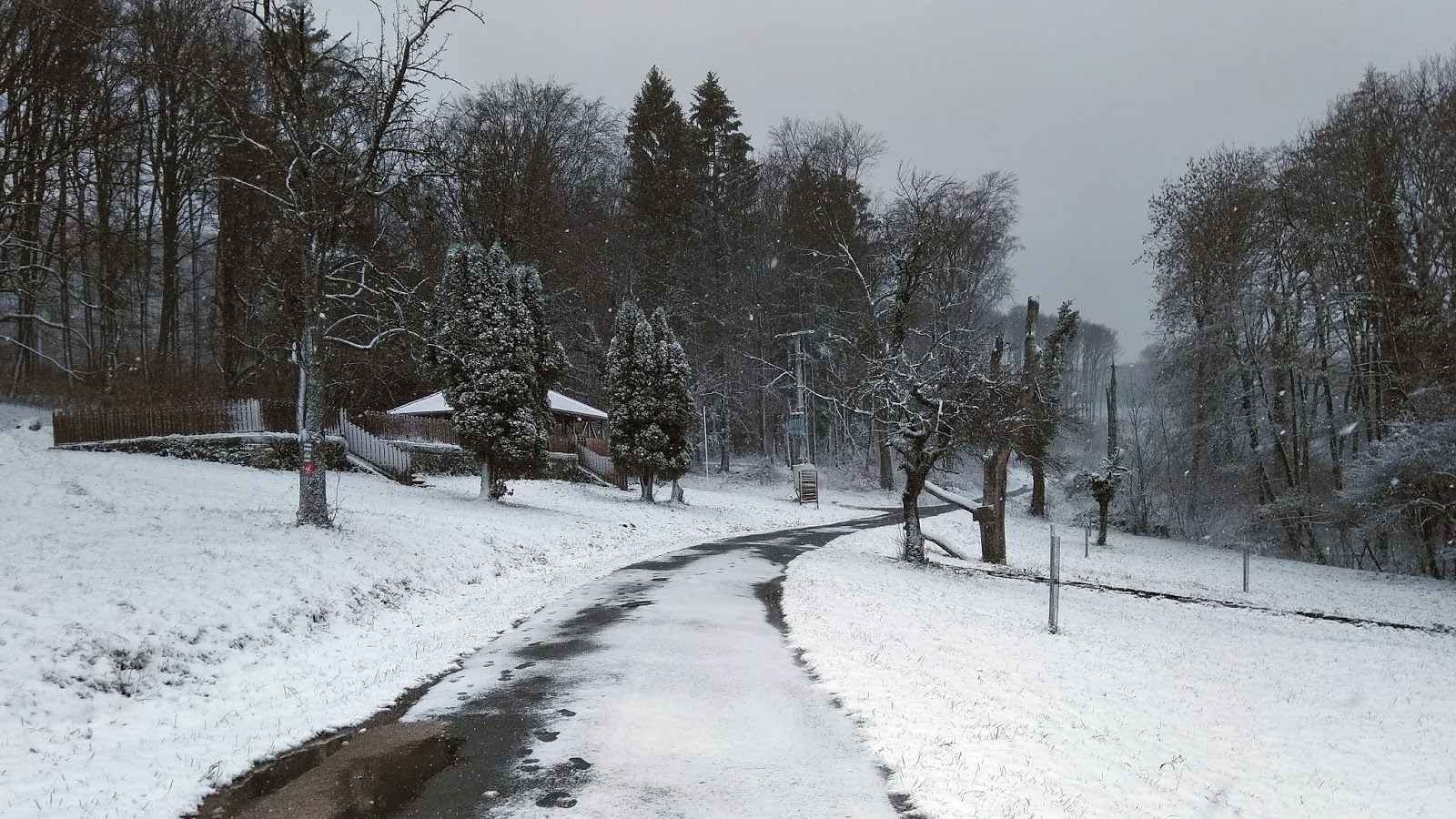 A völgyekben, szélvédett helyeken kényelmes volt a séta, de a hó mennyisége nem akart csökkenni. Volt, ahol a napokig tartó szemerkélő esőzések után nem volt ideje megfagynia a sárnak, és a ráhullott falevelek és az arra rárakódott hóréteg miatt csak még jobban csúszott az út.