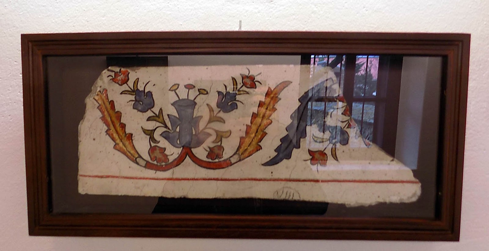 | Eredeti stukkó díszítő elem – már amennyi a tükröződéstől látszik |