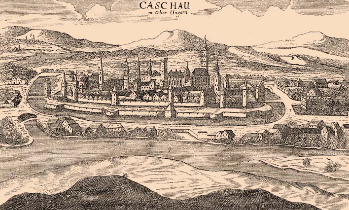 | Kassa középkori ábrázolása – Forrás: Magyarország vármegyéi és városai |