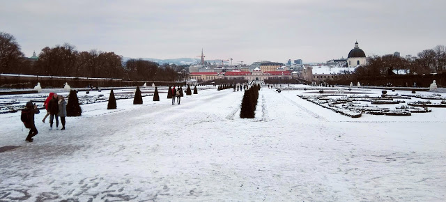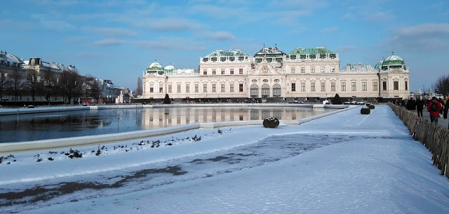 Az Albertinára siettünk, a Monet kiállítás helyszínére. Itt is ugyanazt tapasztaltuk, mint a másik kiállításon: hihetetlenül hosszú sorok, amik mellett mi vidáman elsétáltunk az előre megváltott jegyeinkkel (16 euró volt a felnőtt jegy), és azonnal bemehettünk. Annyiból élvezetesebb volt a Monet, hogy itt részletes leírásokat kaptunk a képek mellé, a festő életét is bemutatták és a művészettörténeti jelentőségét is elmagyarázták. Ahogy a Klimten, itt is sokan voltak, de lehetett normális tempóban haladni. Monet havas képei nagyon tetszettek, tényleg elképesztő, mennyire vissza tudta adni a tél ezernyi árnyalatát.