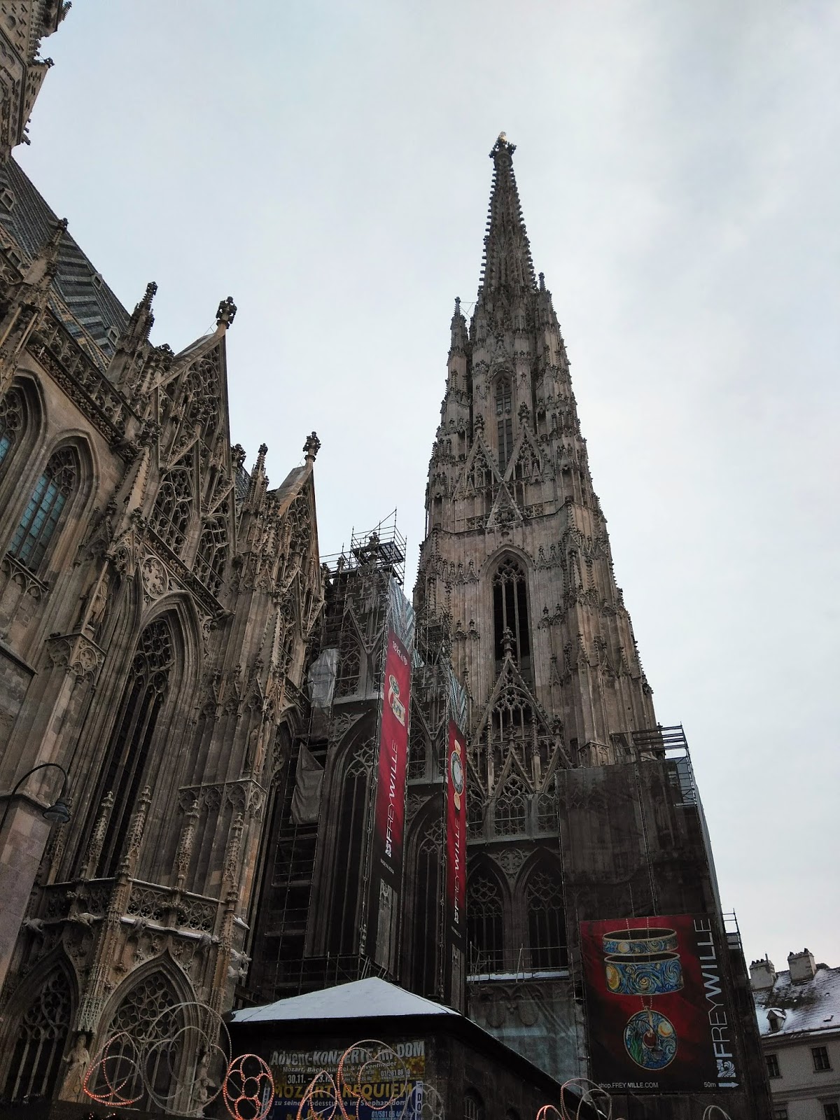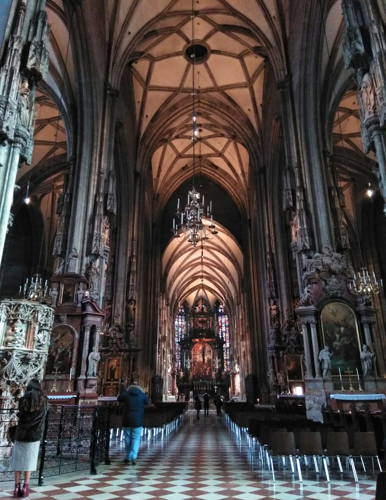 Jóllakottan metróztunk el a belvárosba, a Stephansdomnál szálltunk le. Ha már ott voltunk, bementünk a templomba, és az ingyenesen látogatható részeit megnéztük.
