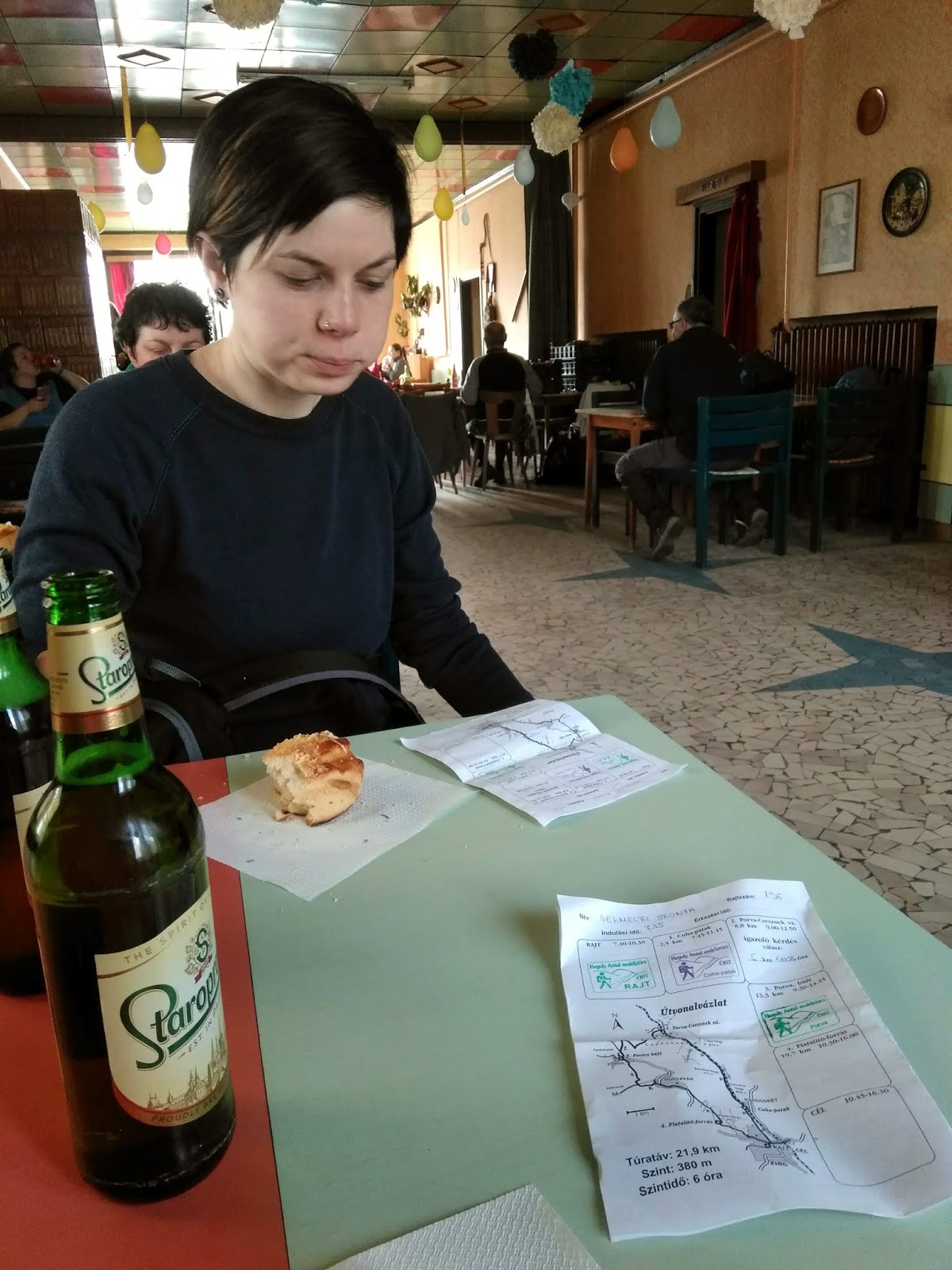 túra reggelén döntöttük el húggal, hogy maradunk a közepes távnál. Én nem tartottam jó ötletnek úgy nekivágni a nagy távnak, hogy idén még nem is túráztam (mindig lebetegedtem, amikor túra lett volna), és ő is belátta, hogy az előző esti sörözés hatására valószínűleg rosszabbul menne a teljesítés. Utólag is bebizonyosodott, hogy jól döntöttünk.