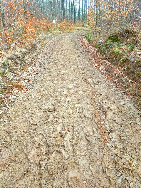 Porva-Csesznekig volt, hogy sáros úton sétáltunk, de annak örültünk, hogy mivel a menet elején vagyunk, még nem volt annyira összetapicskolva, még akadtak száraz részek. A büfében ittunk egy kávét, aztán nekivágtunk a mászásnak Porva felé.