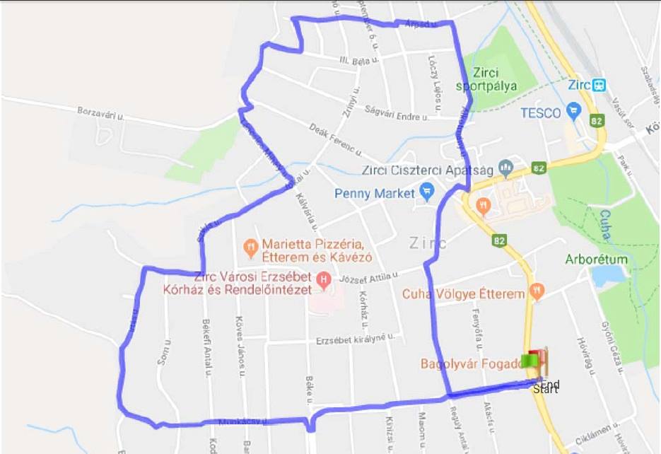 Kis utcákon futottunk, el a Cigánydomb mellett, le a Borzavári úti temetőig, ahol a Pintér-hegyi parkerdő parkolójánál volt a frissítőpont. Toltam egy vizet, magamhoz vettem egy szőlőcukrot, és szaladtam tovább, keresztül az ismerős utcákon. Elég szokatlan élmény volt ennyire hazai terepen futni, egy rakás emlék jutott eszembe futás közben a gyerekkoromból – talán emiatt se álltam meg egyszer sem, lefoglaltak a gondolatok. Belül kicsit ujjongtam, amikor a családnevemmel megegyező utcában futottam. 😀