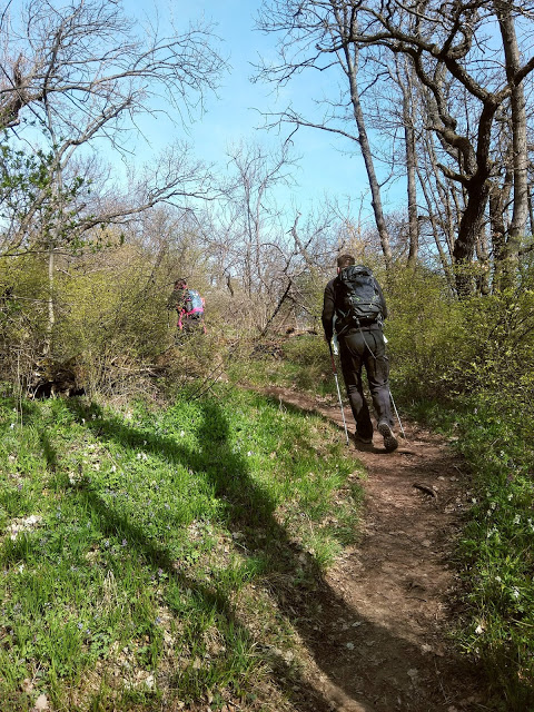 Leereszkedtünk a hegyről, és Csobánka felé vettük az irányt. Erre még sosem jártam, és nem állítom, hogy boldog lettem volna a keskeny, meredek ösvénytől, amin haladnunk kellett. Voltak szakaszok, ahol nem is látszott az út, mert a víz meg az erózió elmosta. A bokám folyamatosan terhelve volt, ahogy a dőlésemet próbáltam egyensúlyozni, hogy ne zúgjak le a szakadékba, és egy idő után nagyon fájt. Ehhez hozzáadódott az előző napi túra okozta kidörzsölt láb, a fáradtság, a hasam is görcsölt, emberekkel lógni se volt nagyon hangulatom, úgyhogy a kis-kevélyi Mackó-barlangnál elkezdtem azon gondolkozni, hogy ezt a túrát nem a tervek szerint fejezem be.