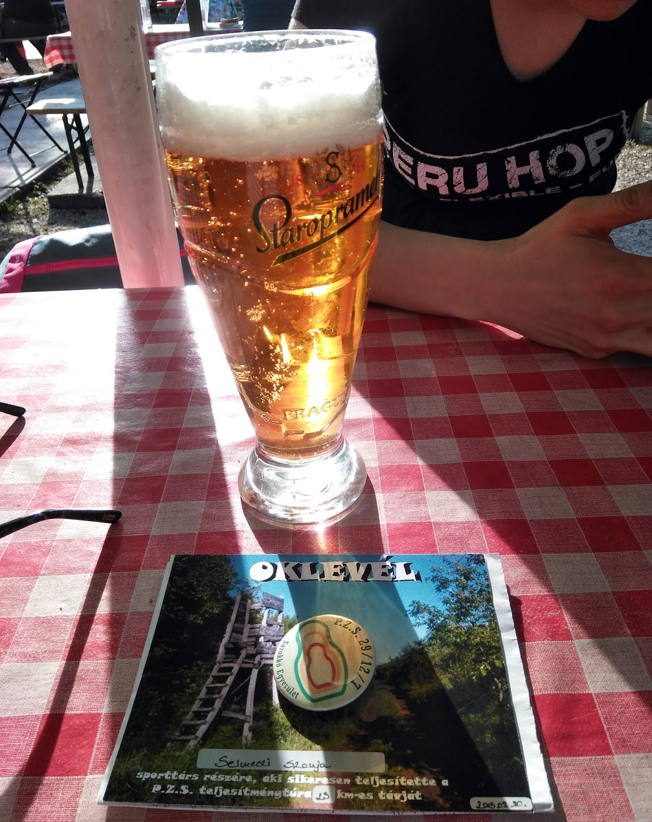 Csobánkán ittunk egy sört a fő téren, én közben néztem magamnak buszt Budakalászra. Rossz érzés túrát feladni, még ha nem is teljesítménytúra, de tudtam, hogy a maradék 7 km Pilisborosjenőig csak szenvedés lenne, annak meg semmi értelme. Felpattantam egy buszra, és hazajöttem pihenni.