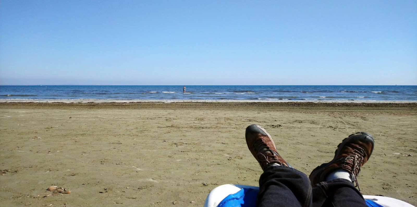 Miután kicsekkoltunk a szállásról, a tengerpartra siettünk. Egy koktélbár volt nyitva a Finikoudes strandon, ott ittuk meg a reggeli kávénkat a tengert bámulva, aztán leheveredtünk egy-egy nyugágyon (decembertől februárig ingyen lehet őket használni), és élveztük a napsütést meg a tenger illatát.