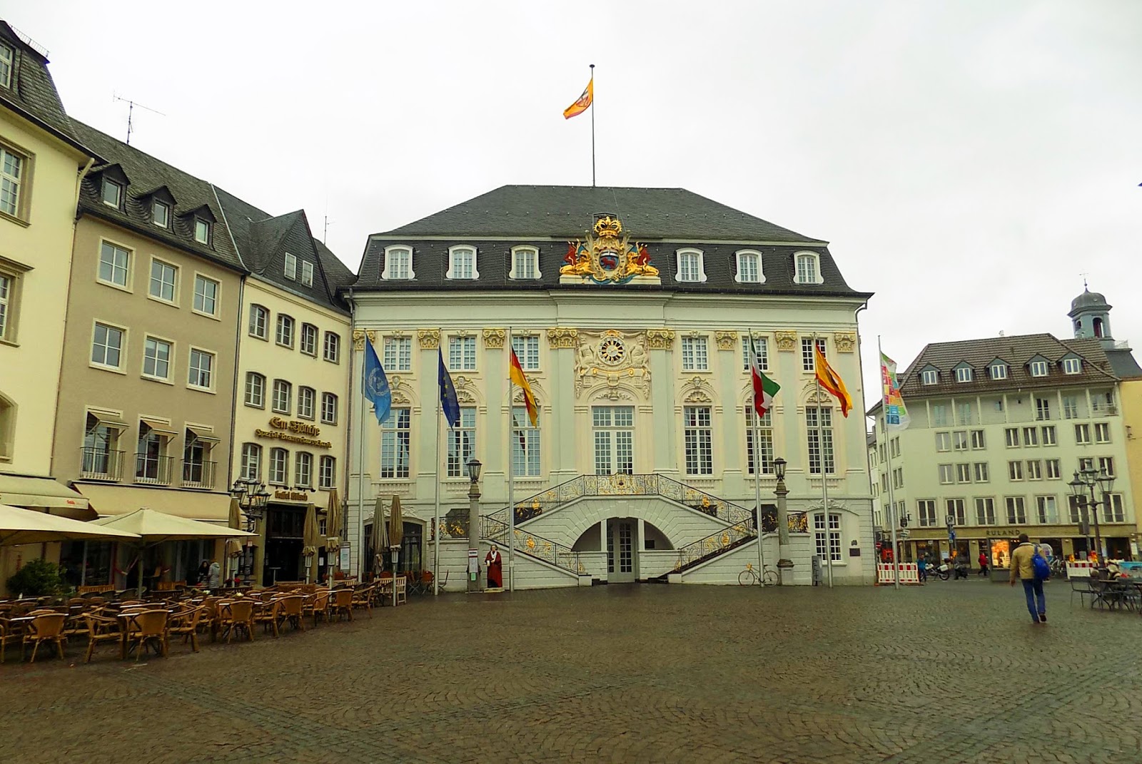 Arra ébredtünk, hogy esik az eső. Nem siettünk a felkeléssel: délig kellett elhagyni a szobát, nem sokkal a határidő előtt adtuk le a kulcsot. Este már Kölnben kellett lennünk a koncerten, de a délutánt Bonn felfedezésére szántuk.
