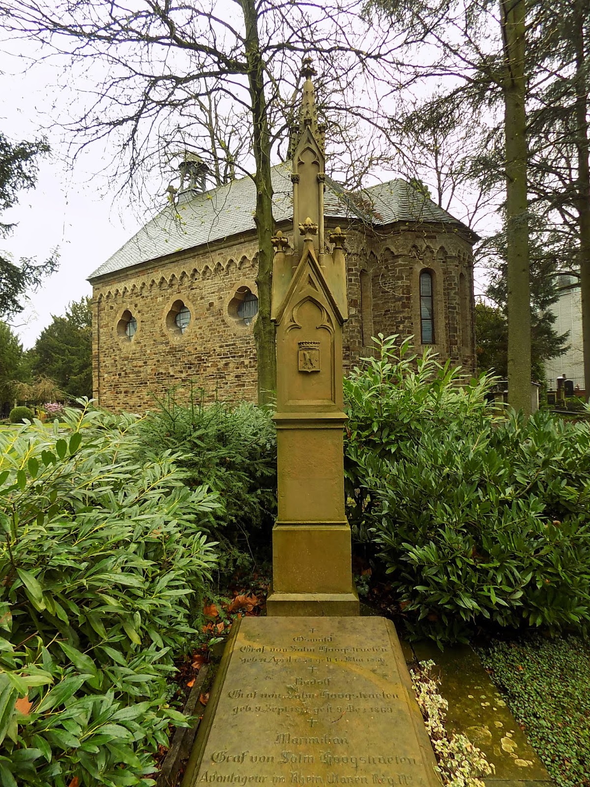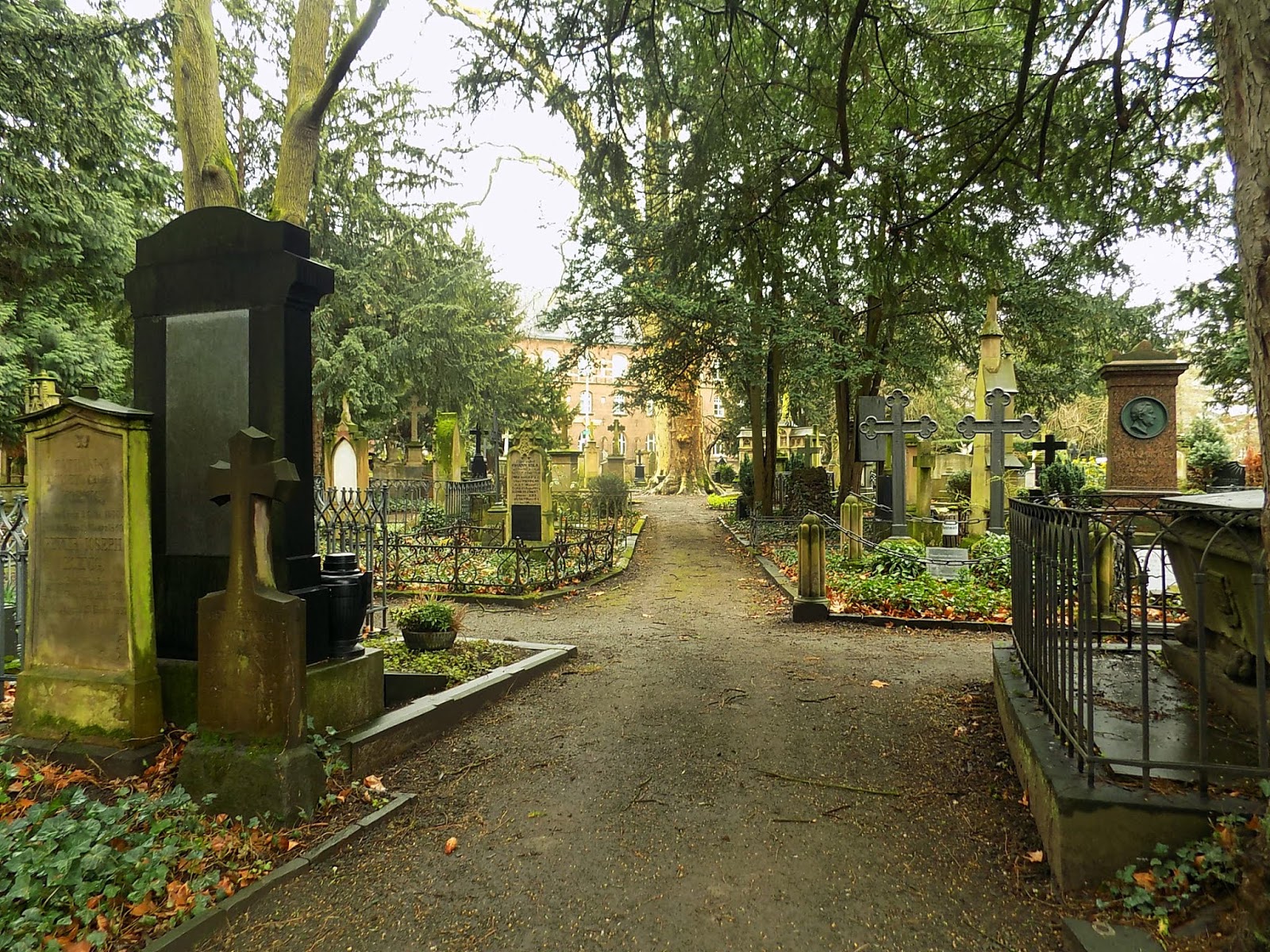 Még borult volt az idő, amikor sétára indultunk. de már nem esett. Először az Alter Friedhof temetőbe mentünk. Ez egy 1715-ben megnyitott temető a városfalon túl, ahova katonákat, idegeneket és szegényeket temettek, és eleinte kifejezetten ritka volt, hogy köztiszteletben álló személyt ide temessenek – volt rá példa, de ezt kifejezetten kérniük kellett.