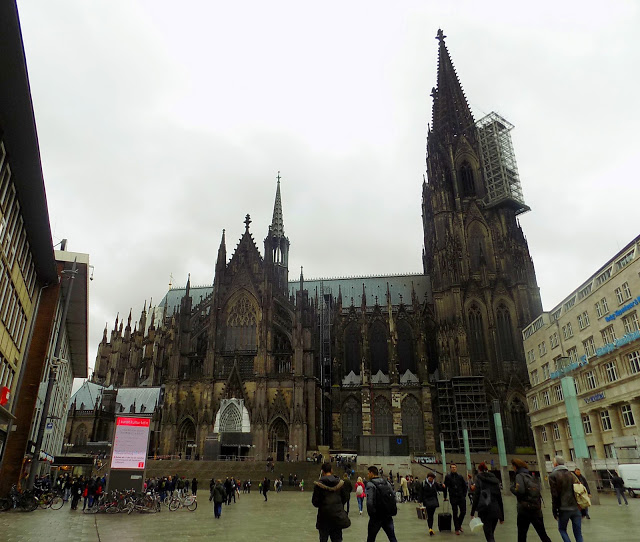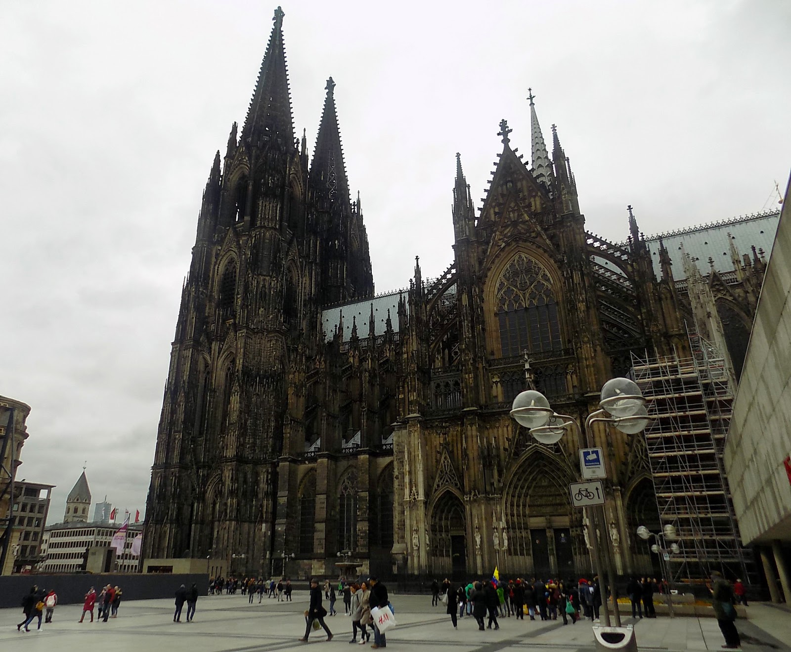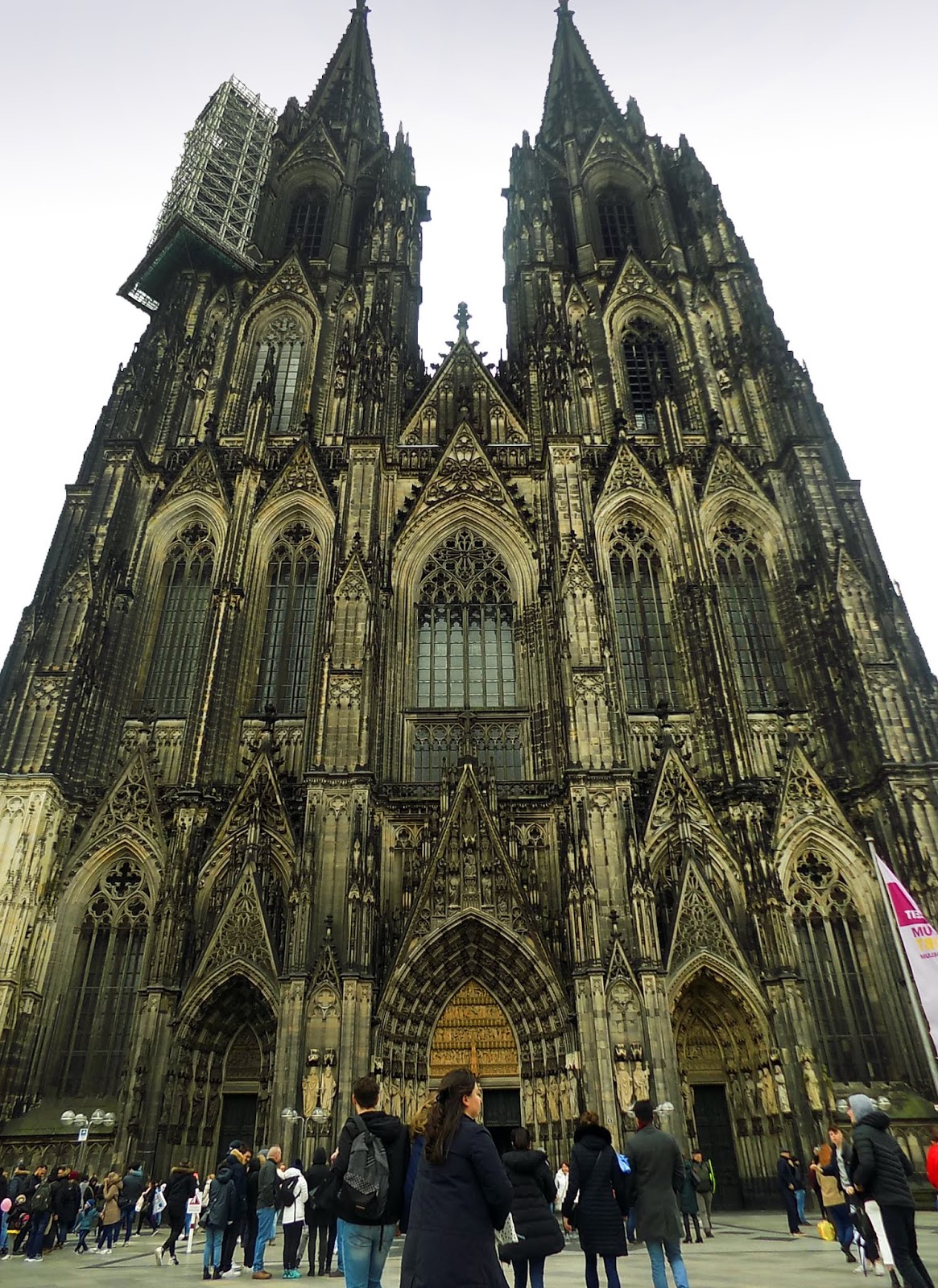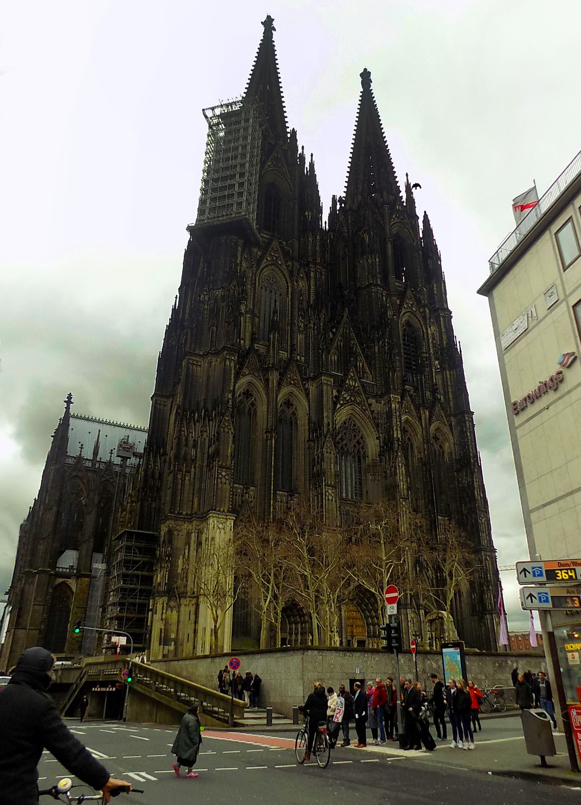 Bonnból bő fél óra alatt értünk Kölnbe, ahol azonnal érezhető volt a nagyvárosias hangulat, a pályaudvaron özönlöttek az emberek. Ahogy kisétáltunk az állomásról, a kölni dómmal találtuk szembe magunkat – igazi lélegzetelállító élmény volt, mert ez a templom tényleg hatalmas. :O Nagyon régen, még gimis koromban jártam itt. Groningenbe tartottunk párnapos cserediákoskodásra, és megálltunk Kölnben pár órára. Nem emlékeztem, hogy ilyen monumentálisan nagy ez a templom.