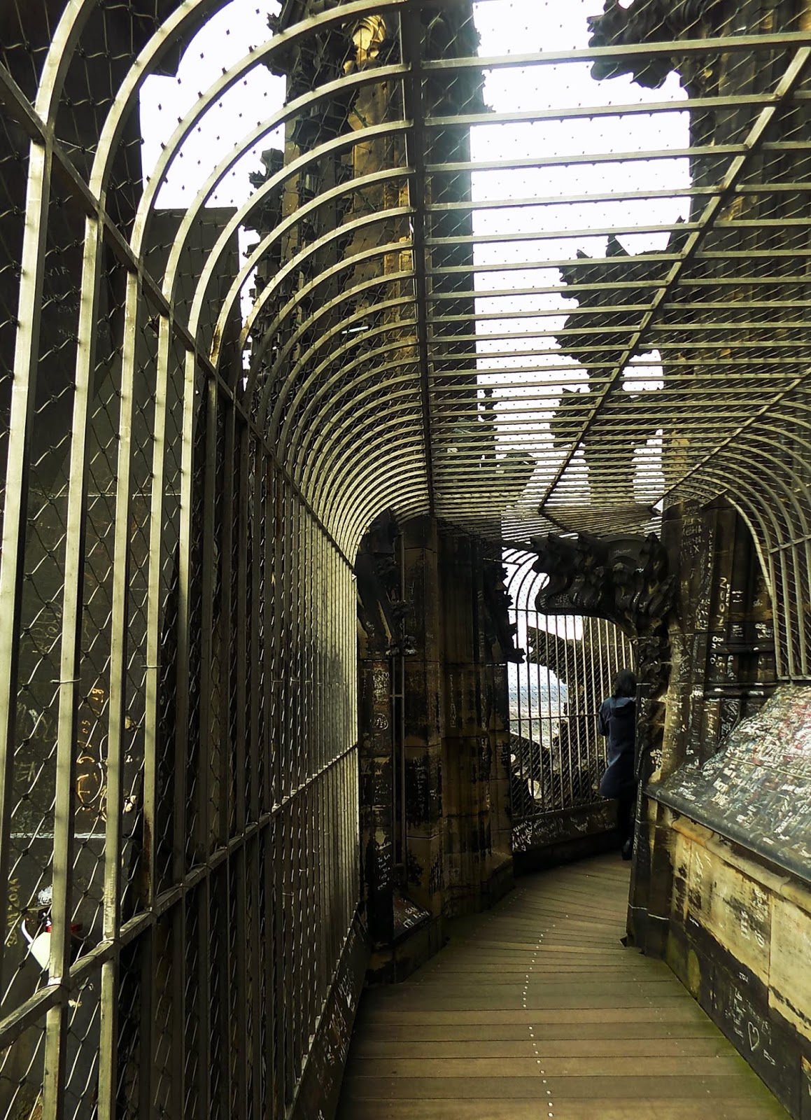 Megváltottam a nem kifejezettem olcsó, 5 eurós jegyet, és megindultam. Jó kis edzés volt, az biztos. A csigalépcső végtelennek tűnt, emellett szűk is volt, ha szembetalálkoztam valakivel, akkor valamelyikünknek meg kellett állnia, hogy a másik elférjen. Éreztem az izmaimat, de haladtam rendületlenül. Egy ideig számoltam a lépcsőfokokat, de a végéig nem tartottam ki a számolással.