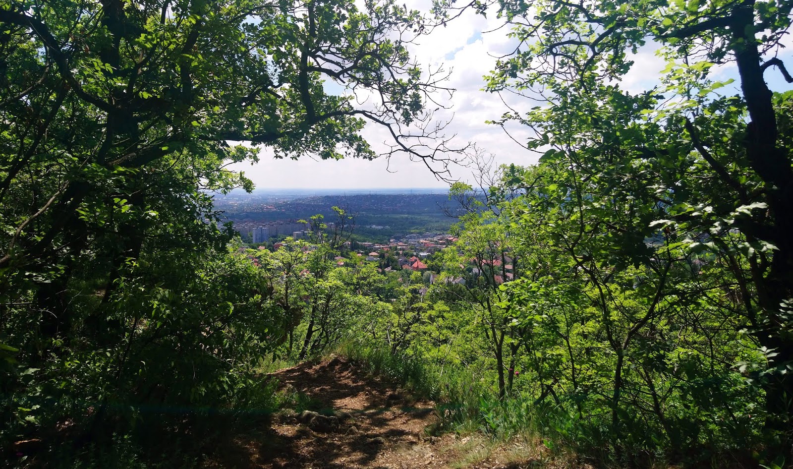 Az Ördög-oromra sétáltunk át, ahonnan nagyon szép kilátás nyílik a városra. Csodálom, hogy korábban nem jártunk erre, tényleg mesés – illetve úgy gyanítom, hogy a Széchenyi-hegyről Széchenyi-hegyre túrán anno jártunk erre, de időnk nem volt nézelődni, az tuti.