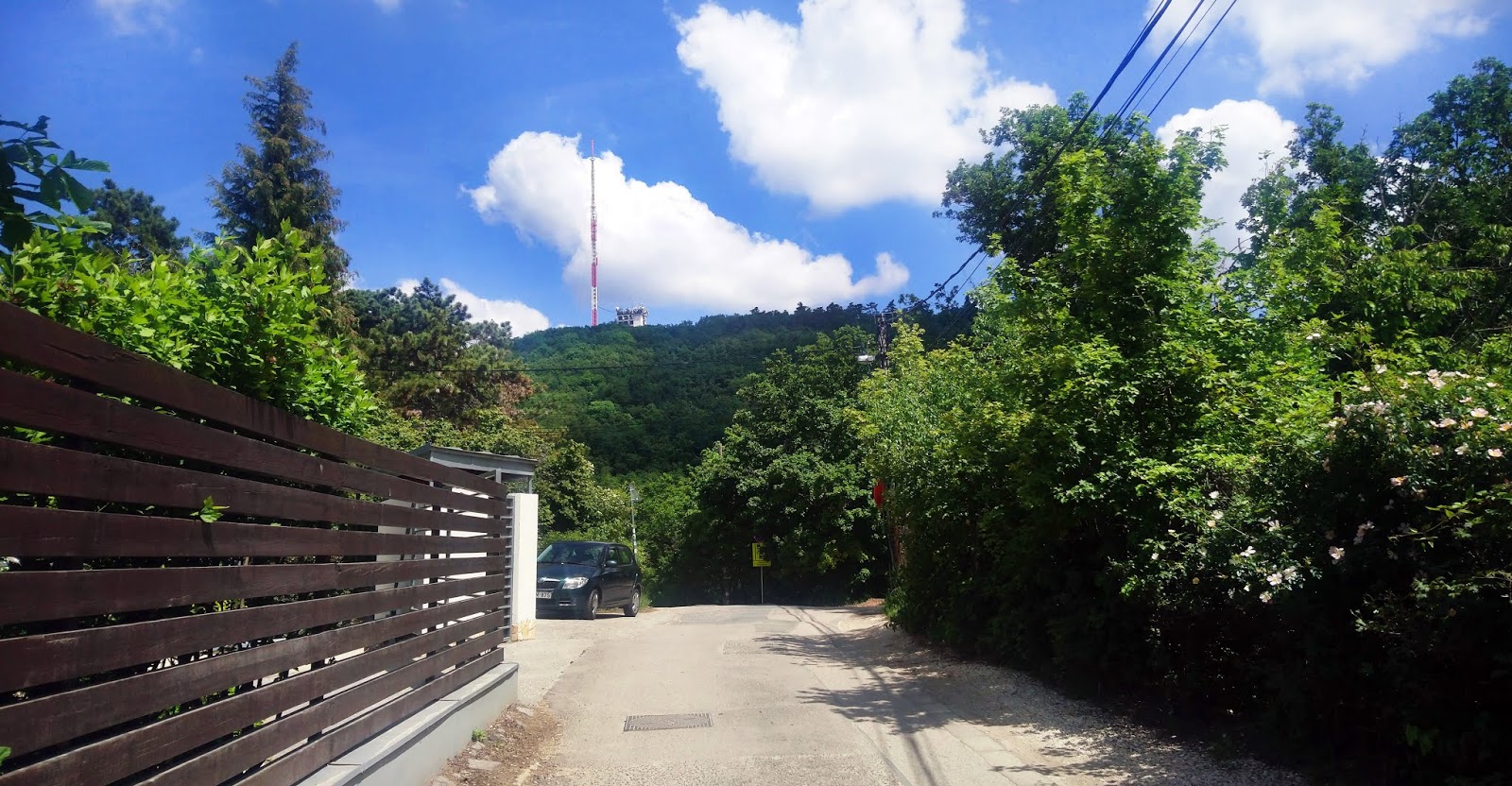 Budaörs utcáin baktattunk egy ideig, aztán felmásztunk a Frank-hegyre, a turistaházhoz. Ezt az útvonalat már jól ismertük, szívtuk is a fogunkat előre, mert meredek és nem kicsit fárasztó. A nap is tűzött rendesen, és a turistaházig az út nagyobbik része betonúton vezet, kevesebb része vezet erdőn.