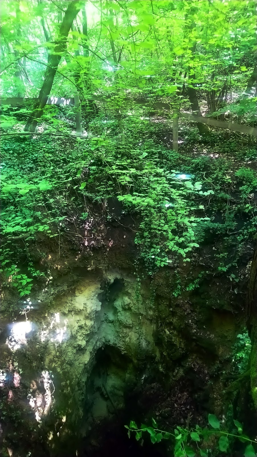 Ahogy az Úti Madonnához közeledtünk, meglestük a Farkasvölgyi-víznyelőt.