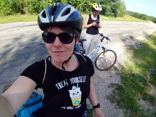 Szép időnk volt, napsütéses, kellemesen meleg, és az út is jó minőségű volt. Kényelmes tempóban haladtunk, több kisebb megállóval – ezt az út végére se tudtam megszokni, hogy szinte 10 km-enként megálltunk, bevártuk egymást, szusszantunk egyet. Két éve sokkal kevesebb pihenőt tartottunk, de ekkora társaságnál muszáj volt megállni, nagyon eltérő sebességgel haladtunk.