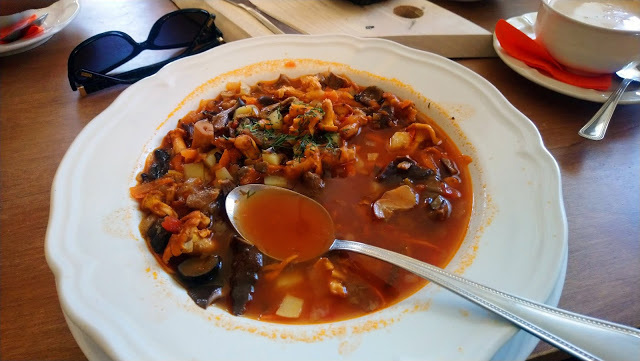10 órakor terveztünk továbbindulni, de kicsit elaludtunk. Ilyen hangulatos reggeli kávézásban is rég volt részem, az erdei faház mindent sokkal királyabbá tesz. Mikor elindultunk, eleinte földúton, süppedős homokban haladtunk, ami köves útban folytatódott, ami ha lehet, még rosszabb a homoknál is. Nagyon örültem, amikor végre betonútra értünk.