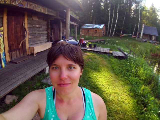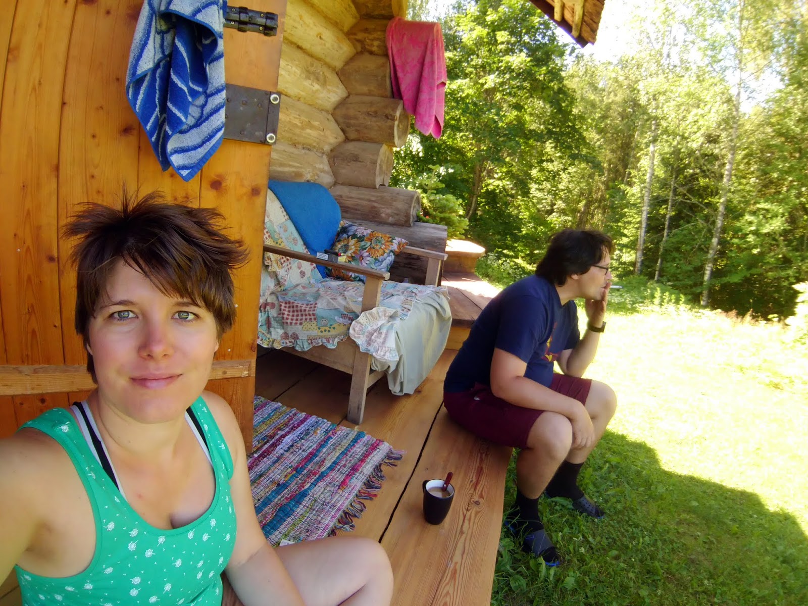 Haanjában gyorsan beszereztük a vacsorának valót, aztán elfoglaltuk a szállást. Lepakoltunk, és átsétáltunk a szomszédos tanyára, Mooskára, ahol Eda néni és a kutyái már vártak minket. Tavaly csak az elméleti hátterét tudtuk meg a füstös szaunáknak, ezúttal viszont a gyakorlatban is kipróbálhattuk.