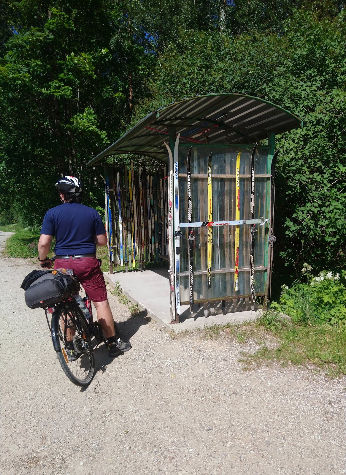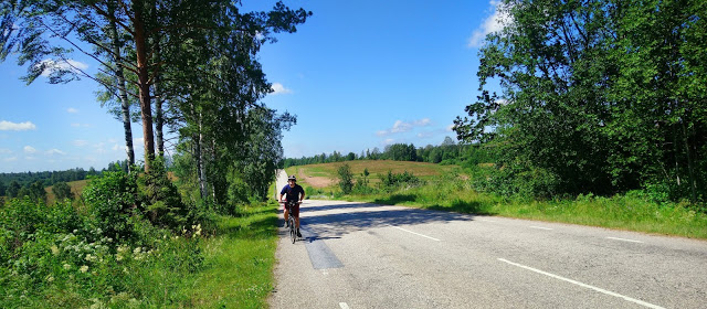 Az út további része olyan betonon folytatódott, ami miatt két éve már siránkoztam: valahogy nagyon rücskös, gurulás közben is tekerni kell, mert lelassít. Még több emelkedőt kaptunk, mint az út elején, de már csak 8 km-re volt az aznapi végállomásunk, Haanja. Foxszal tekertünk együtt, teljesen bezsongtunk a tájtól, mondjuk a zöld dombok és fenyvesek közt nem nehéz boldognak lenni.