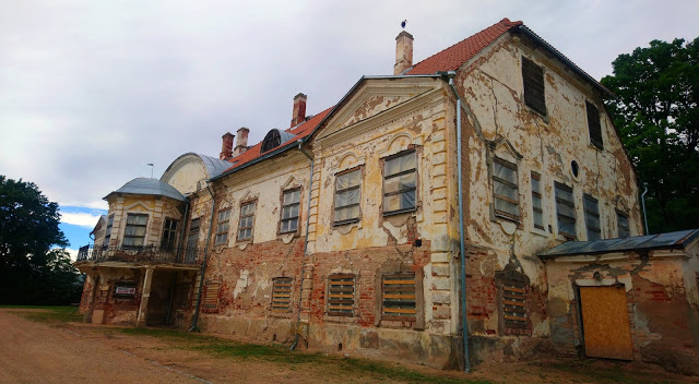 Összepakoltunk a szálláson, és dél után nem sokkal elindultunk. Ahjában még megálltunk a boltnál. Még a helyi mõist megnéztem magamnak, elég romos állapotban van. Az ahjai udvarházat 1749-ben építették barokk stílusban.