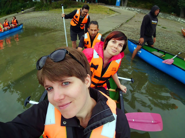 Az indulás és az első negyed-fél óra nagyon mókás volt, fox szenvedett a kormányzással, folyton elsodródtunk, mindig a rossz irányba mentünk, lemaradtunk, de aztán a kormányosunk belejött, onnantól nagyjából tudtunk átlagban véve egyenesen menni. Persze ez úgy nézett ki, hogy megindultunk az egyik irányba, aztán korrigáltunk a másikba, aztán megint az egyik irányba. Kicsit idegölő volt, de egy idő után megszoktuk, hogy mi így közlekedünk. Az para volt, ha valamelyik másik kenu a közelünkbe jött, de szerencsére nem történt baleset, és fel se borultunk.