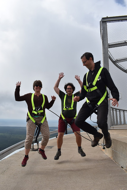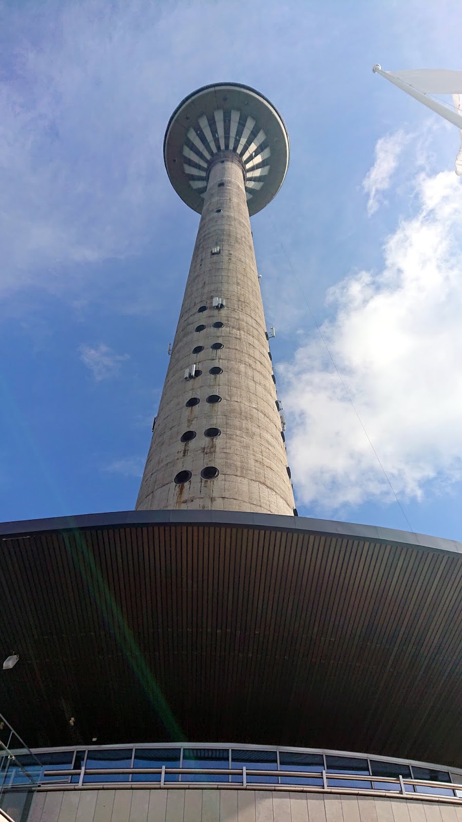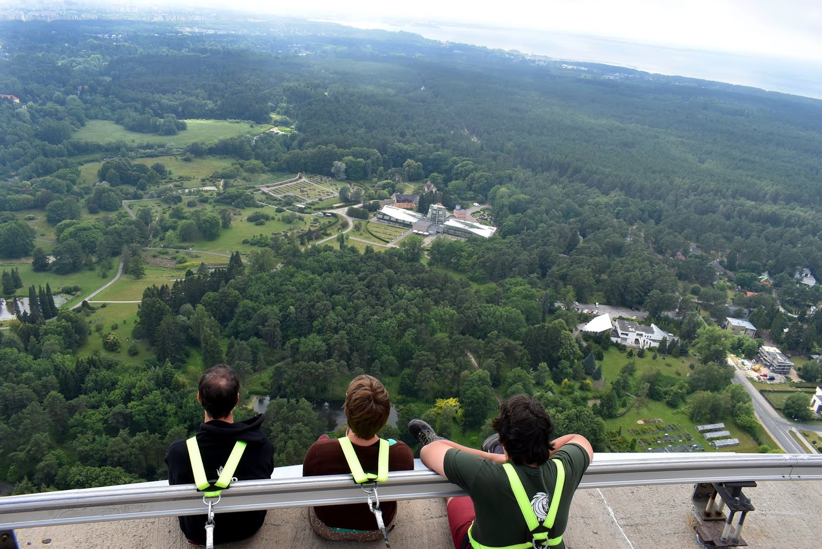 Busszal mentünk a toronyhoz, ami a város szélén, a botanikus kert mellett található. Fél óra alatt értünk a hatalmas torony tövébe, lentről nézve kicsit megremegett a lábunk, amikor arra gondoltunk, hogy nemsokára ott fent fogunk sétálni a torony peremén. A Walk on the edge túrának ez a lényege, a kilátószint külső peremén lehet sétálni. 30 euró/fő volt az ára.