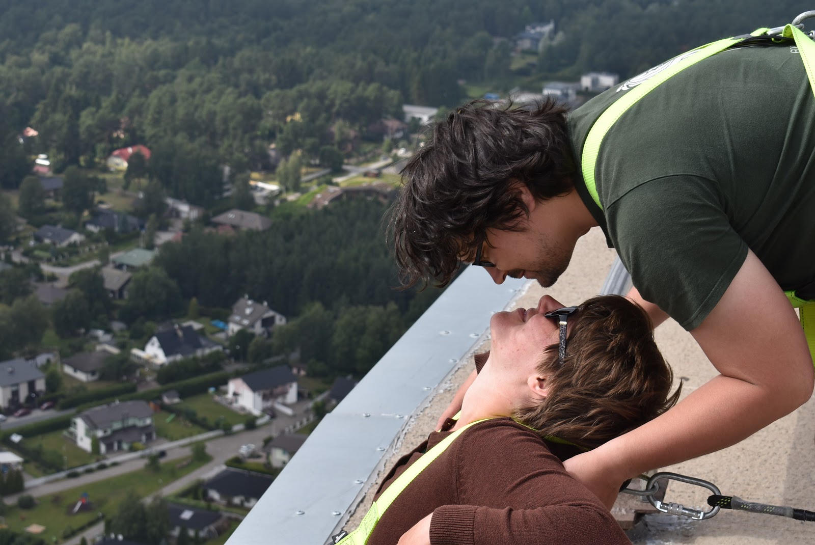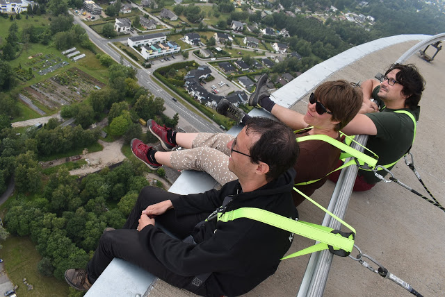 A fél óra nagyon gyorsan eltelt odakint. A peremen sétáltunk, magasan voltunk, de tudtam, hogy rögzítve vagyok, és előttem már sok-sok ezer ember járt itt, egyáltalán nem volt félelmetes. Kiültünk a beton szélére, lelógattuk a lábunkat, már csak a csikket kellett volna a városra pöccinteni.