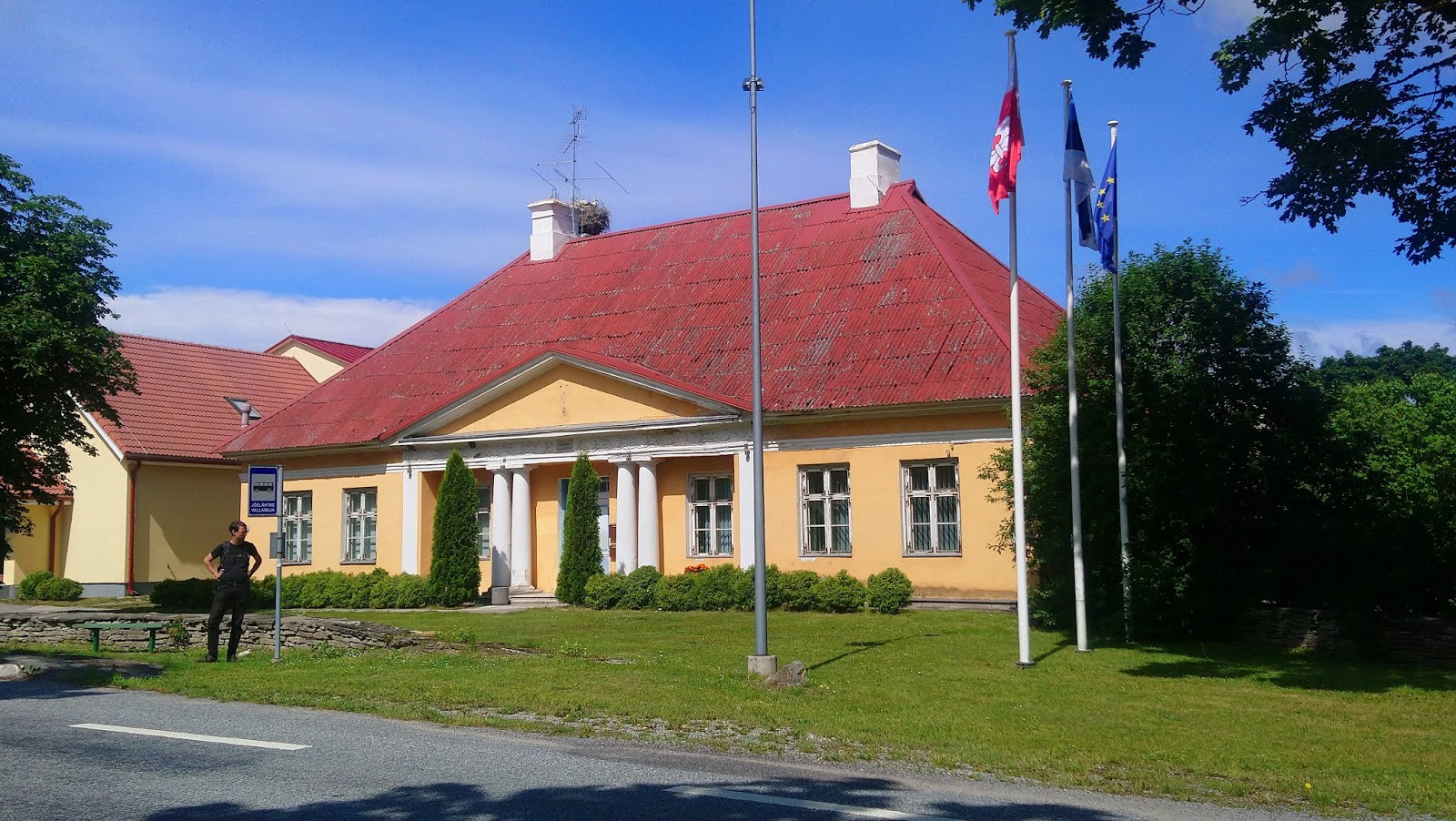 | Jõelähtme önkormányzati épülete gólyafészekkel a tetőn |
