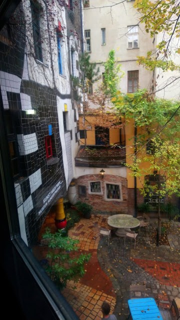 A közeli Kunst Haus Wienben megnéztük az állandó kiállítást Hundertwasser életéről és munkásságáról. Az időszaki kiállítás Street.Life.Photography néven fut a legfelső emeleten, arra is váltottunk jegyet, ha már ott voltunk. (A kombinált jegy 12 euró volt.)