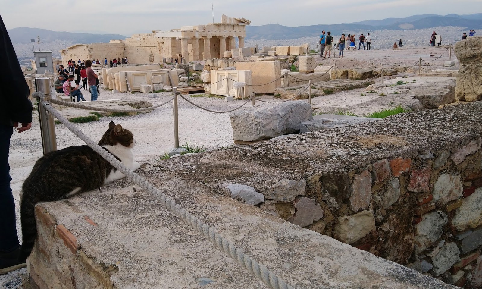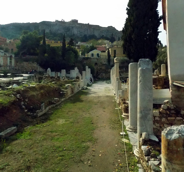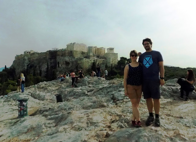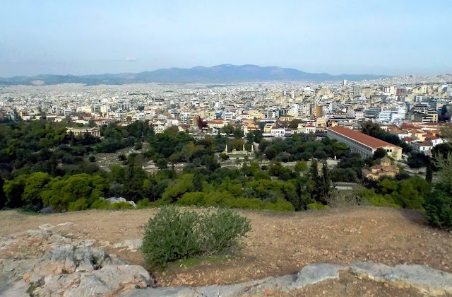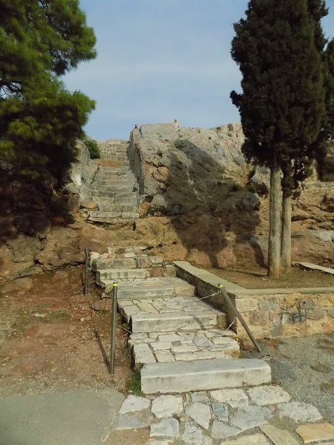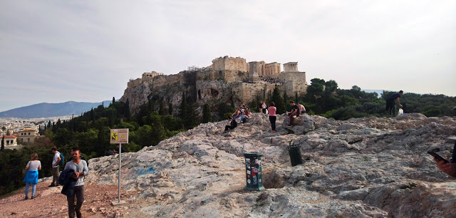 Emberek kávéztak békésen, néha fűszag szálldosott, sütött a nap, sütkéreztek a macskák, teljesen idilli volt. Csak időnként próbáltak ránk tukmálni karkötőket és rózsákat erőszakos utcai árusok, de ha nem vett el tőlük semmit az ember, akkor nem volt gond. Felsétáltunk az Akropolisz főbejáratához, ahol a híres Areioszpagosz sziklához, ahol régen az Areioszpagosz, azaz arkhónokból álló athéni tanács ülésezett az i.e. 6. század előtt. Az 1. században Pál apostol innen prédikált az athéniaknak, először víve el a keresztény tanokat a városba.