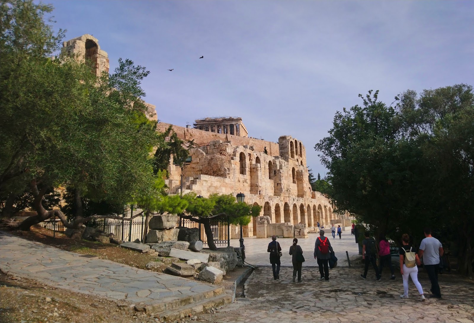 23 fok volt napsütés, igazi koranyári idő. A séta során alulról jártuk körbe az Akropoliszt, és lentről is nagyon impozáns látványt nyújtott.