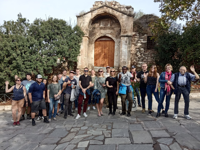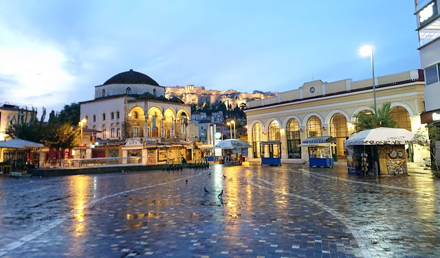 New Athens Free Tour szervezésében, amire még előző nap regisztráltam. Mivel egy napunk volt a városban, célszerűnek tartottuk egy ilyen túrán résztvenni, hiszen sok idő el tud menni azzal, ha az ember maga próbálja megtalálni az izgalmas dolgokat. A találkozóhely a Monastiraki téren volt. Túravezetőnk egy görög származású, de Londonban nevelkedett fickó volt, aki miután hazalátogatott Görögországba, ott is ragadt. Érdekes akcentusa volt, néha nem is teljesen értettem, mit mond, de tényleg brit kiejtéssel beszélt.