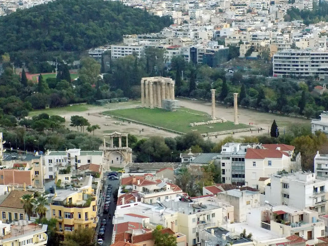 | A Hadrianus diadalív és a Zeusz templom a magasból. Innen látszik, mennyire hatalmas volt. |