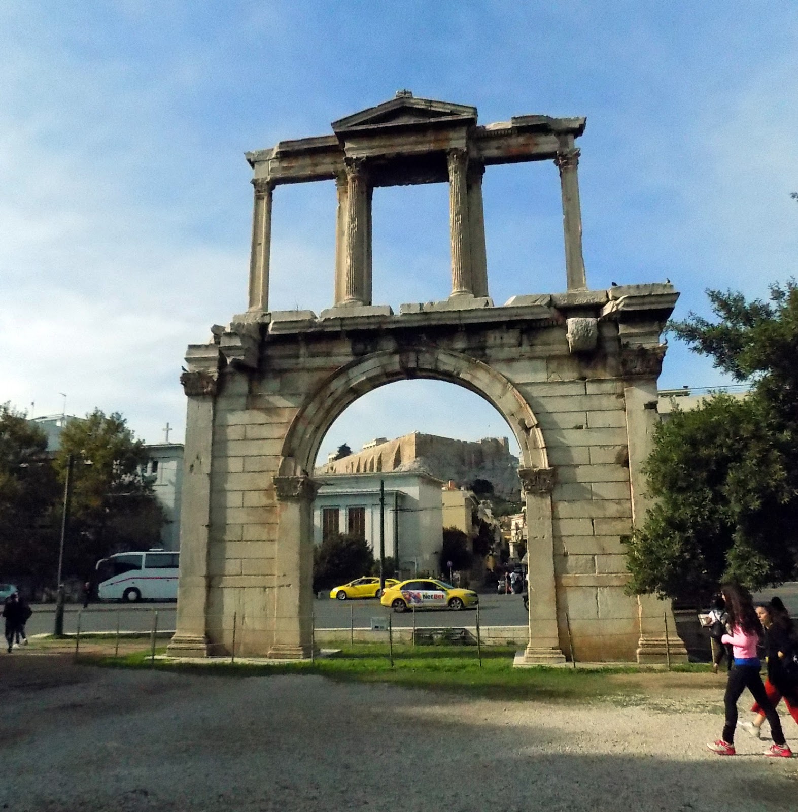 Nem sok volt már hátra a túrából, Hadrianus diadalívéhez mentünk még el, és megnéztük a hajdani Zeusz templom romjait. Hatalmas építmény lehetett, a megmaradt néhány oszlop méretéből ez egyértelműen kiderül. 638 évig építették, Görögország legnagyobb szentélye volt, de a 3. században a betörő herulok kifosztották, ezután sosem építették újra.
