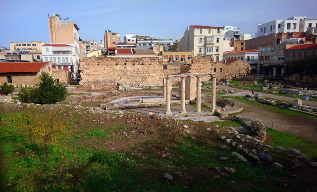 Hadrianus könyvtárától indultunk. Ez annak idején amolyan multifunkcionális kulturális intézmény volt. A római Hadrianus császár által i.sz. 132-ben építtetett épületben nem csak könyvtár működött, de kertje is volt, ahogy tágas olvasótermek, előadótér és kiállított műalkotások is.