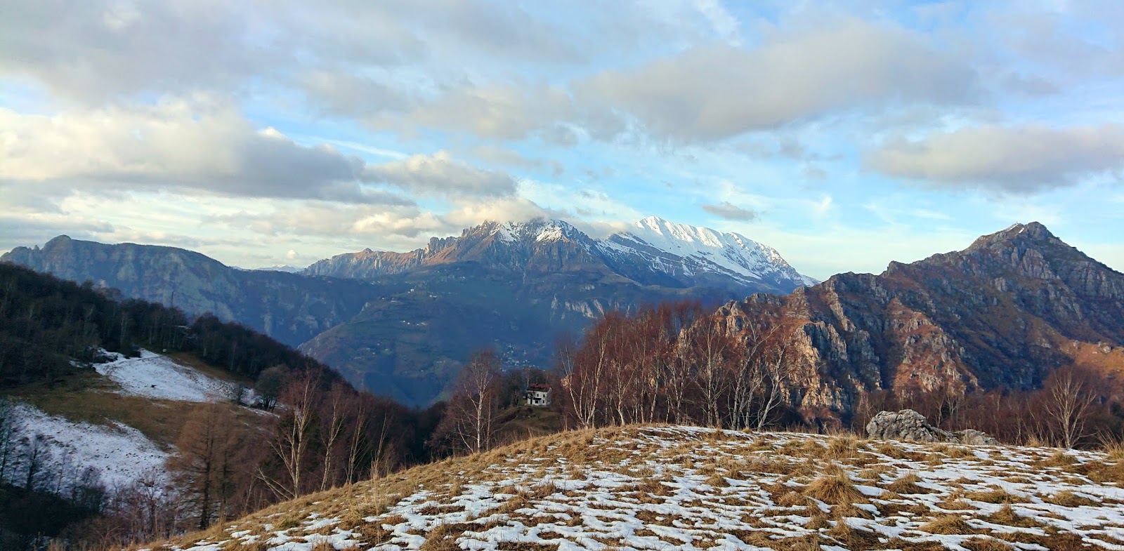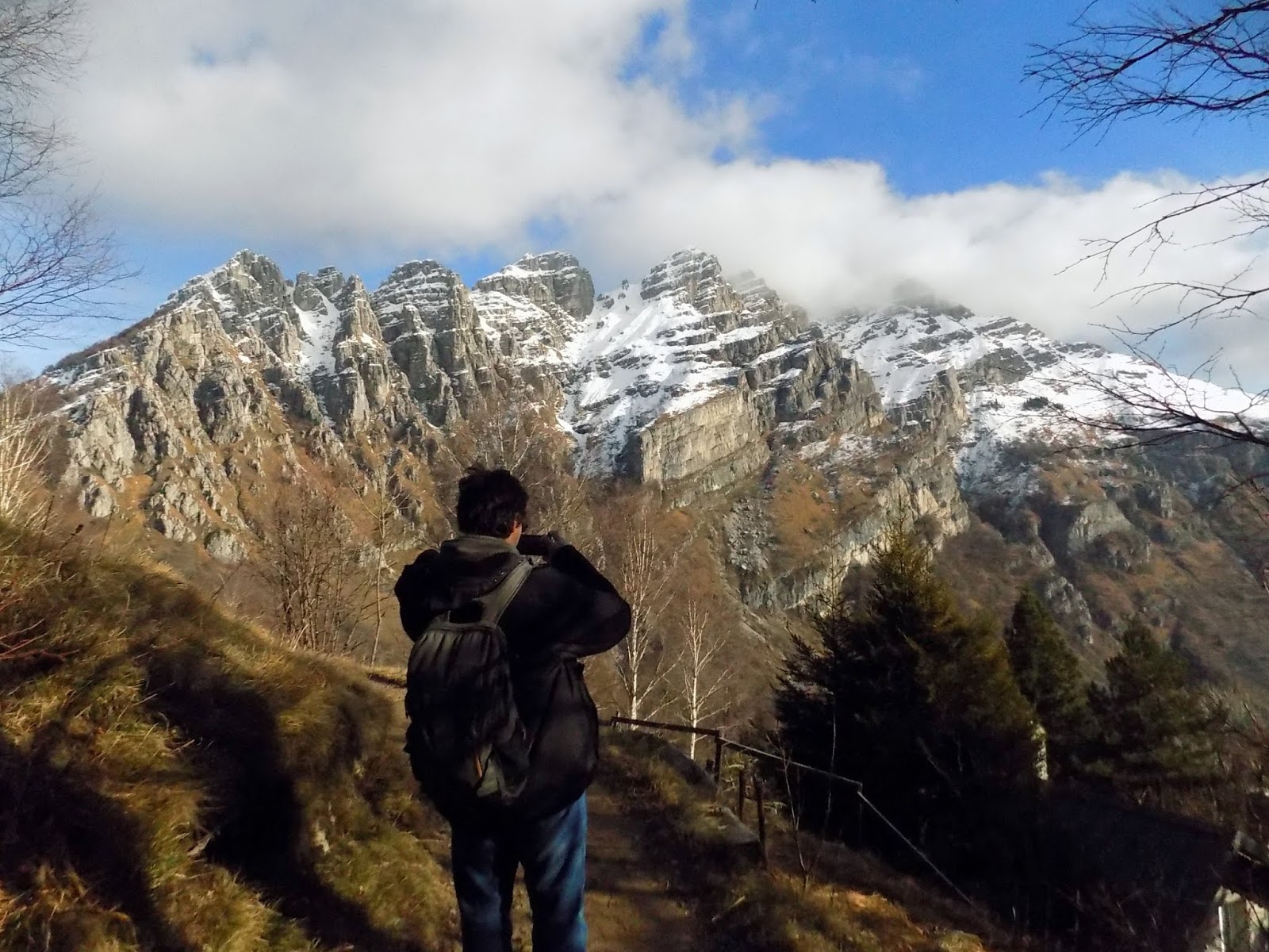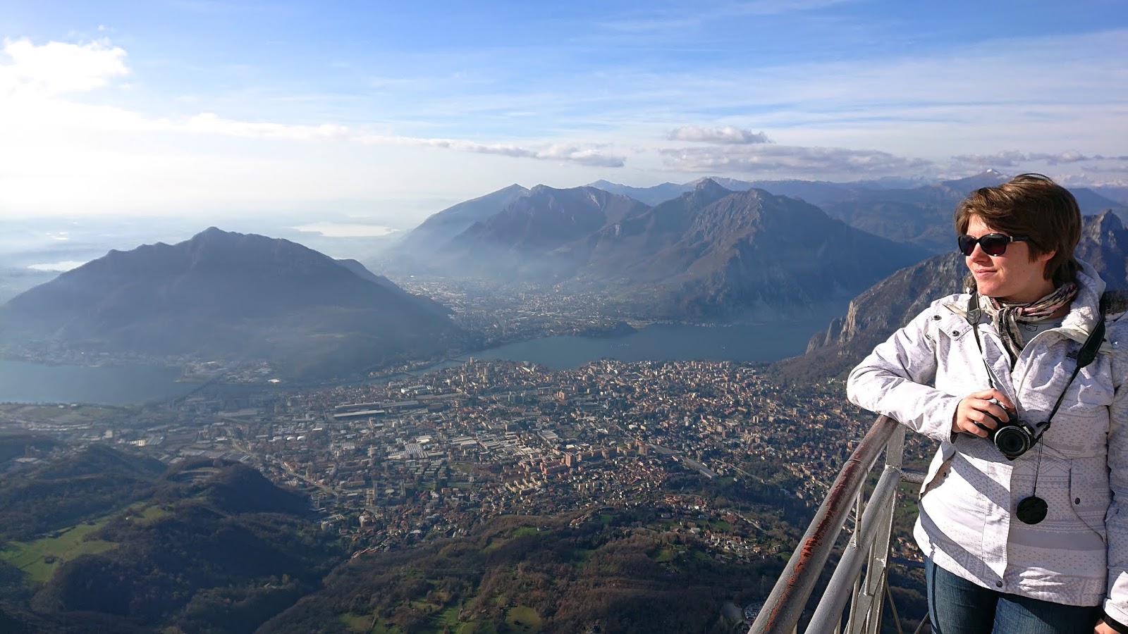 Negyed óra sétával értünk el a kilátóponthoz egy kereszt mellé. Na onnan tényleg lélegzetállítóan szép volt a kilátás a Comói-tóval és a hegyekkel.