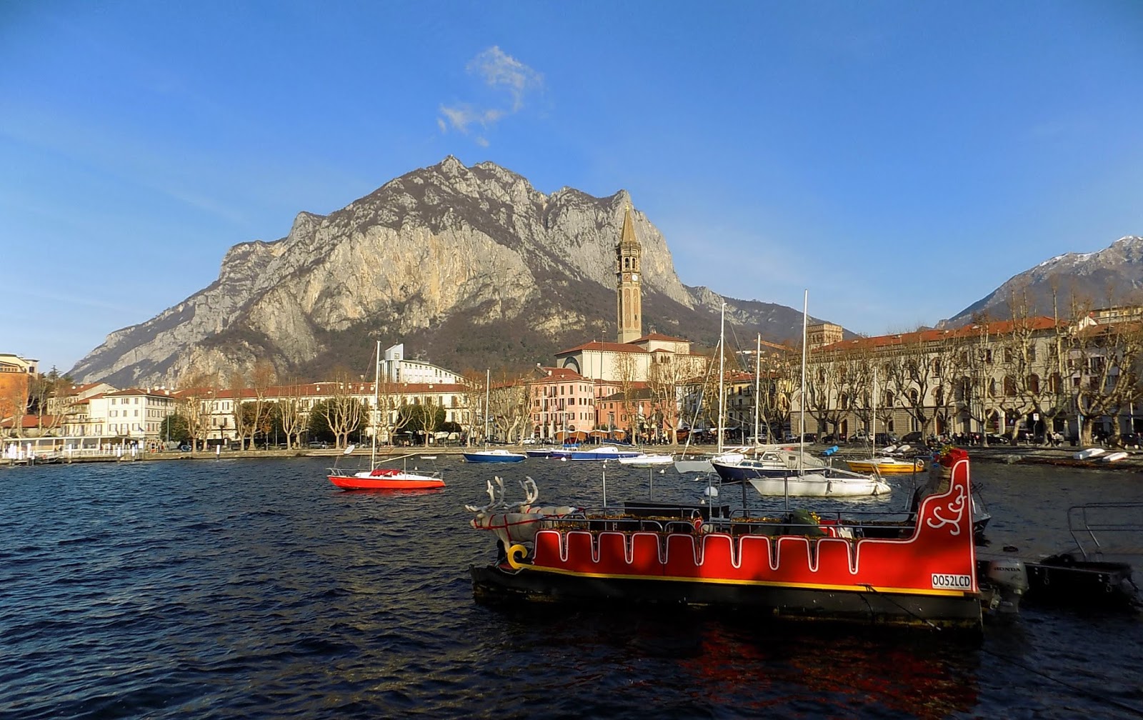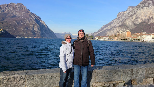 Elsétáltunk a tópartig, és megállapítottuk, hogy bizony a Comói-tó innen is baromi szép. Nem csak a tó irányába, hanem a város felől is hegyek vettek körbe.