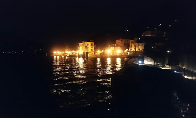 A bortól jókedvűen sétáltunk vissza a szállásra a parti sétányon. Csak mi jártunk ott, sötét volt minden, a túlparton is csak halványan látszódtak a fények. Ez a városka még kihaltan is nagyon szép.