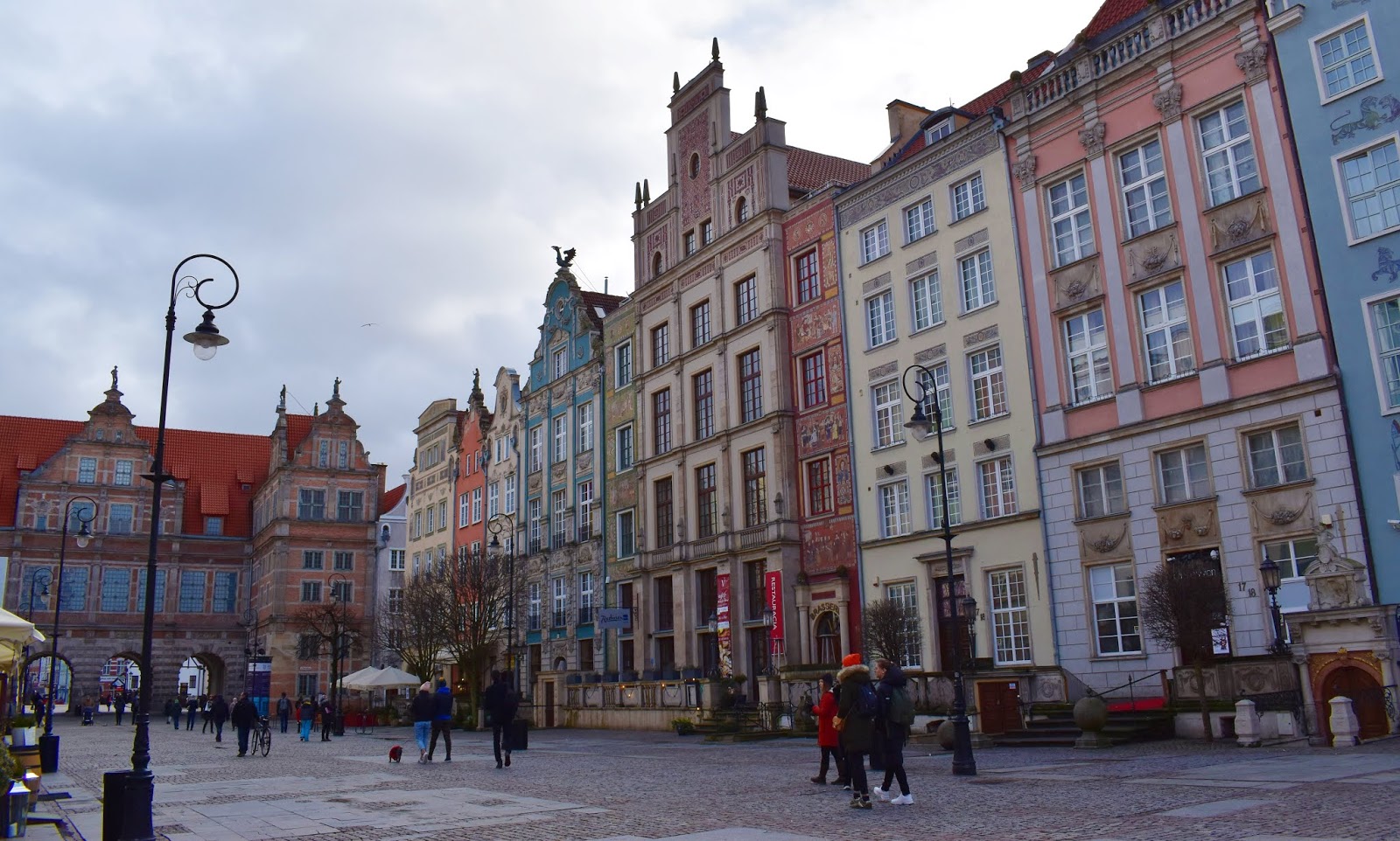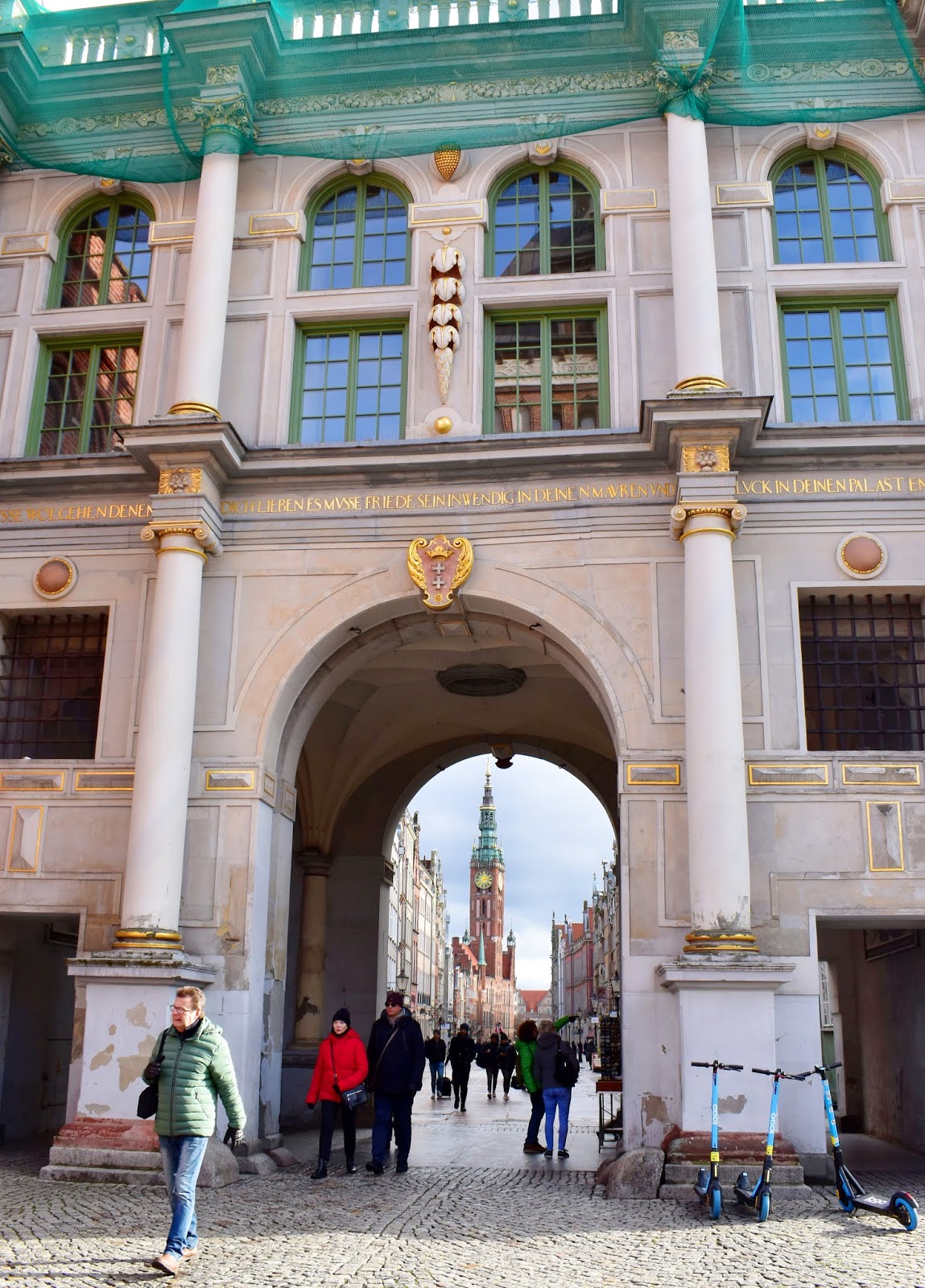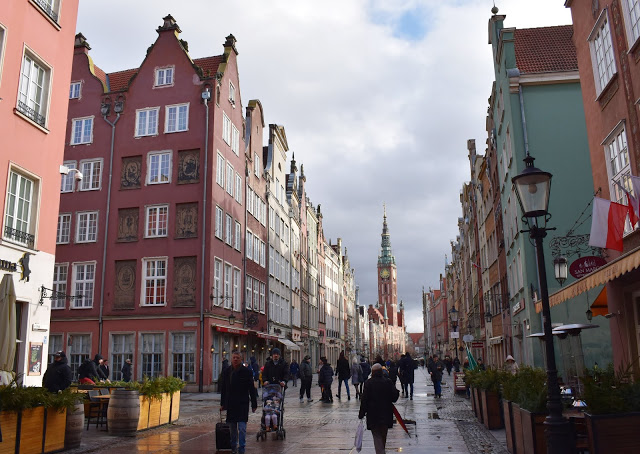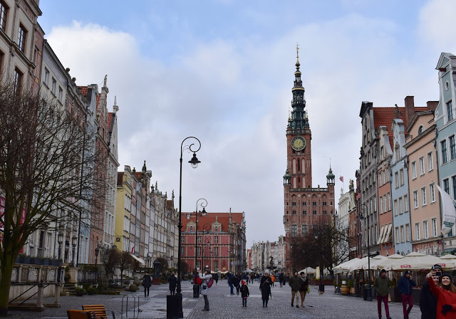 A kapun átlesve a Długa utca és a városháza tornya tárult elénk, képeslapra illő volt a látvány.