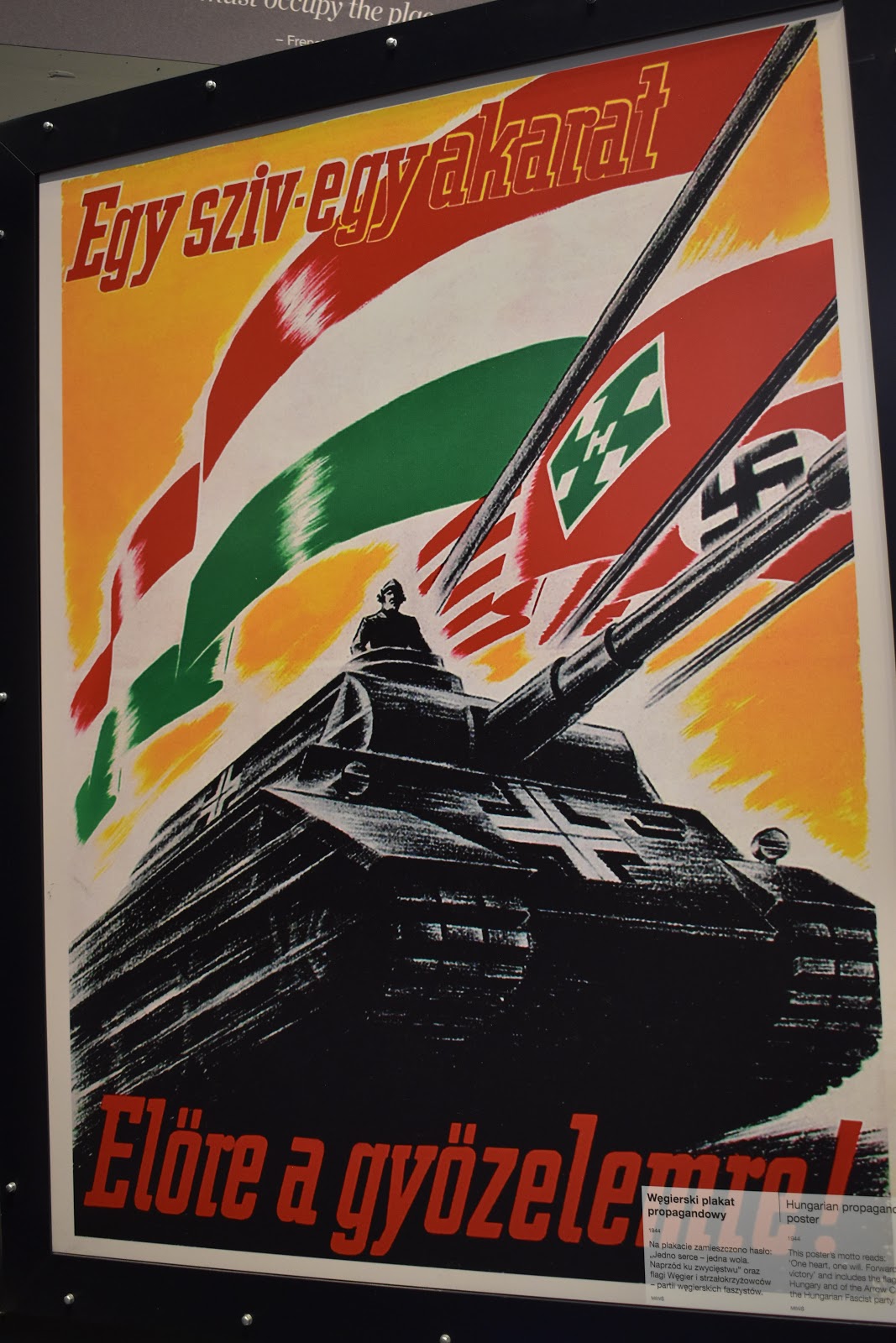 Azt kicsit elfelejtettük, hogy mégiscsak Lengyelországban vagyunk, egy olyan országban, amit elemi erővel sújtott a háború. Valószínűleg a világ minden pontján nehéz téma a II. világháború, de itt különösen az. Már ahogy beléptünk, a háború borzalmairól és a béke fontosságáról szóló videót láttunk. A tárlat eleje alaposan bemutatta a különböző nemzetek diktatorikus rendszereinek jellegzetességeit, aztán következtek a háború borzalmai.