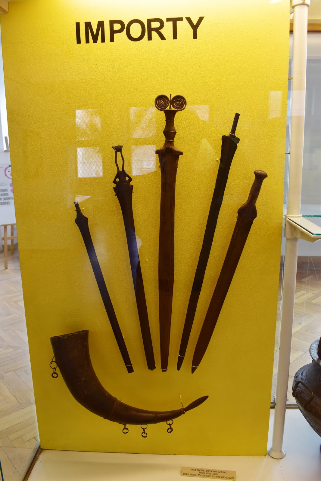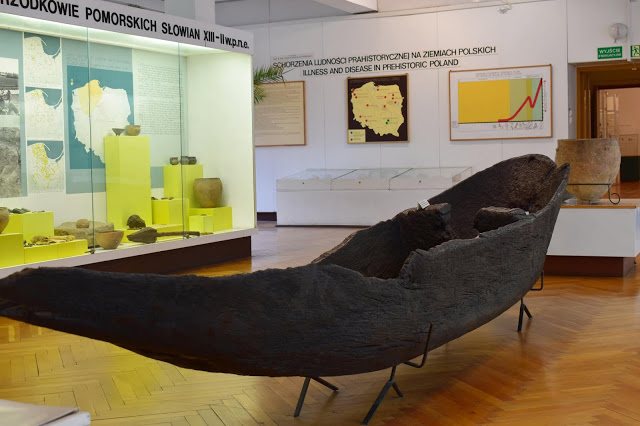 Az emeleten már a környéken talált leleteket nézegethettünk a kőkortól kezdve egészen a középkorig. Pomeránia benépesítése a pleisztocén jégkorszak után kezdődött, amikor a területet beterítő skandináviai gleccser visszahúzódott, és megkezdődött a felmelegedés. Az emberi jelenlét első jelei az i.e. 10-9. évezredből származnak ezen a területen. Az i.e. 8. ezredtől az i.e. 5. évezredig itt élő népcsoportok vadászó-gyűjtögető életmódot folytattak, és kőeszközökkel munkáltak meg fát és bőrt. Az i.e. 5-4. ezredben délről földművelő népek érkeztek a területre, ebből az időszakból származnak a vonaldíszes kerámia kultúrájának leletei.