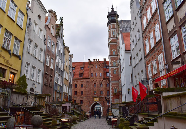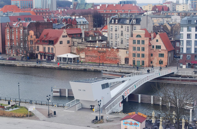 A Zöld kapun átsétálva már a Motława folyó partjára, a kikötőbe értünk. A kapu a 16. század második felében épült, és az antwerpeni városházáról mintázták.